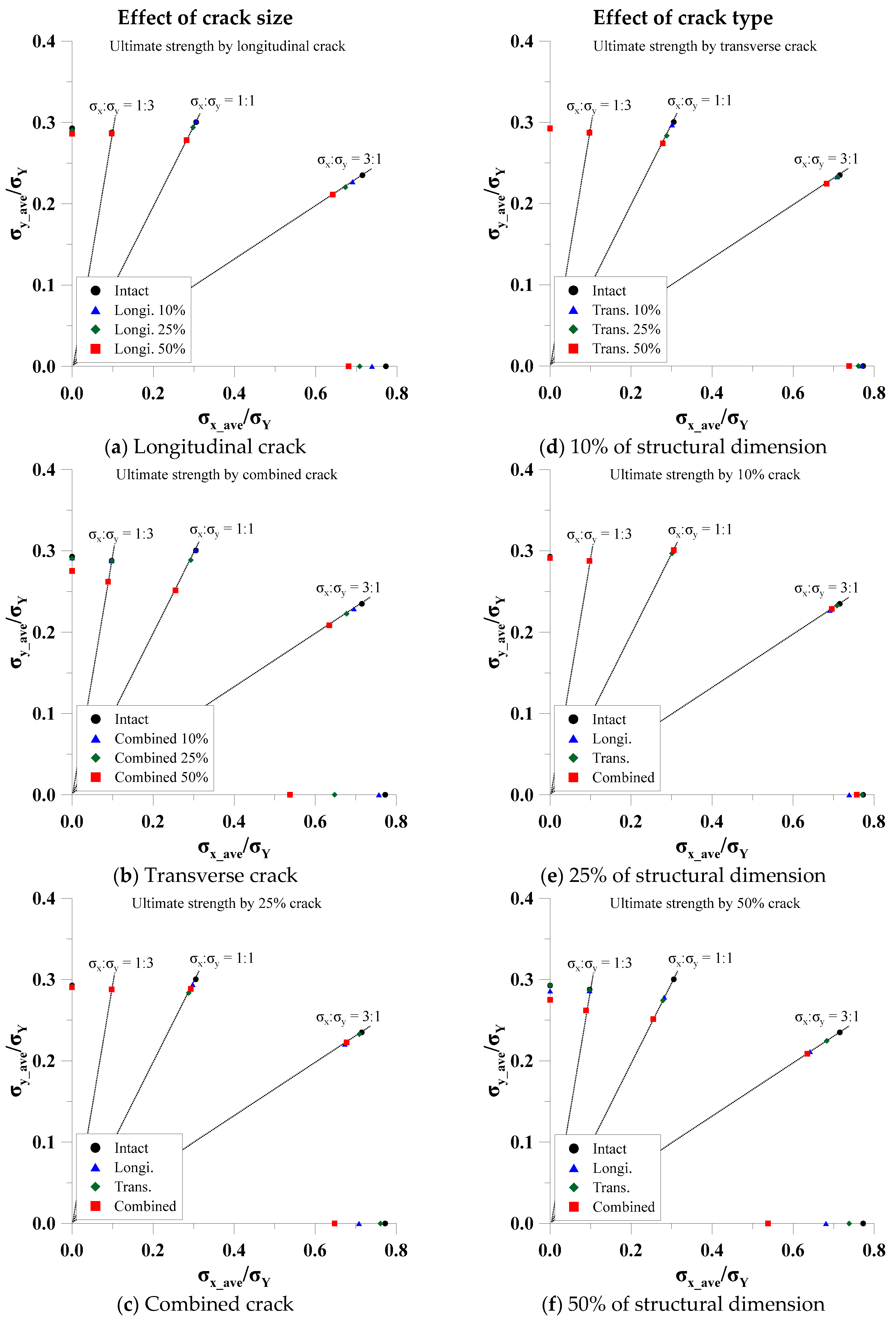 | Load Ratio (σx:σy) | Intact | Longi. 10% | Longi. 25% | Longi. 50% |