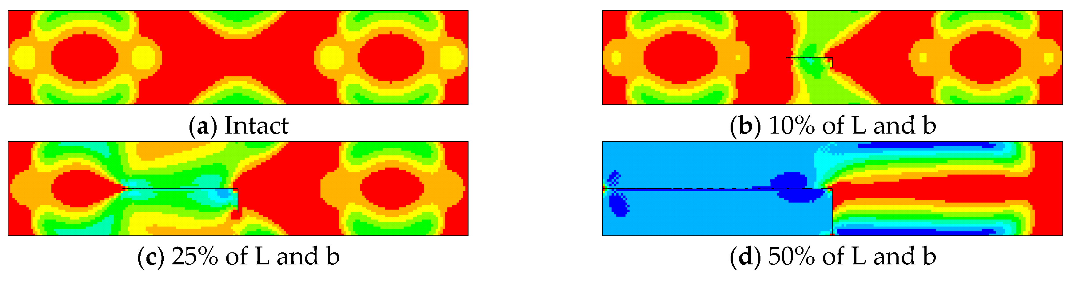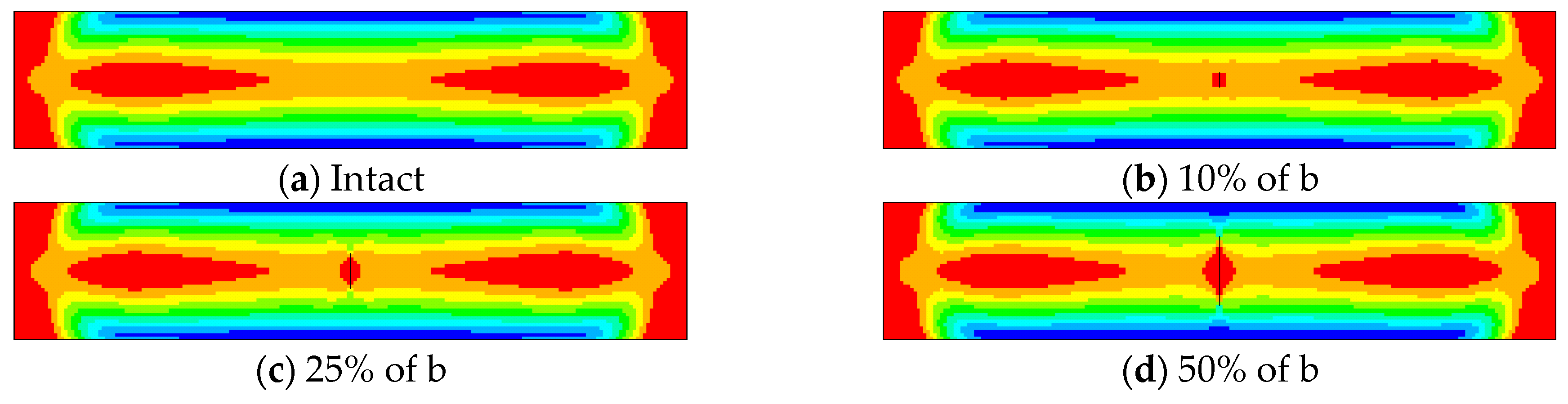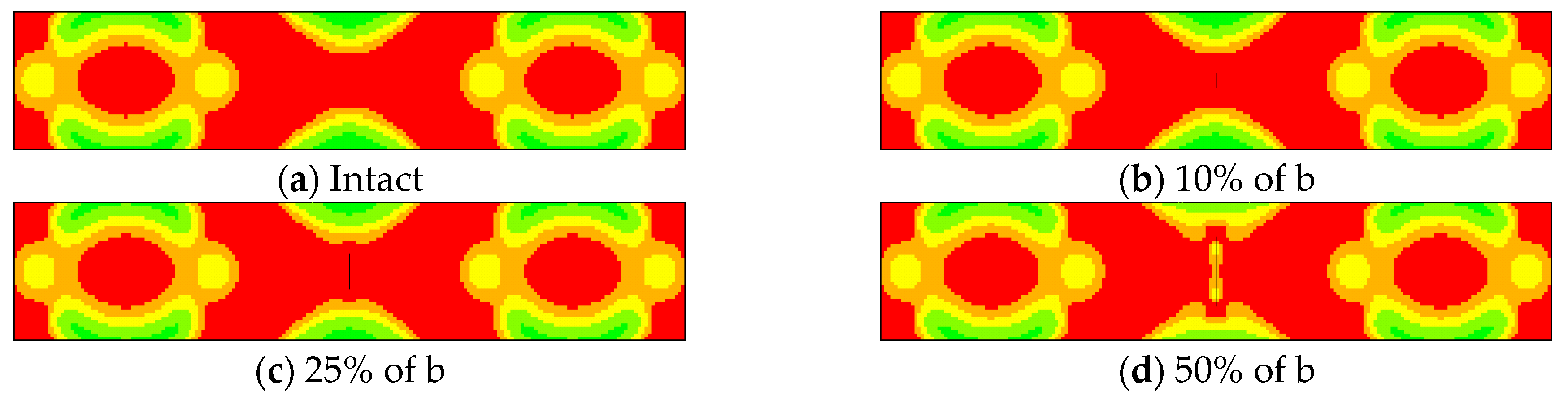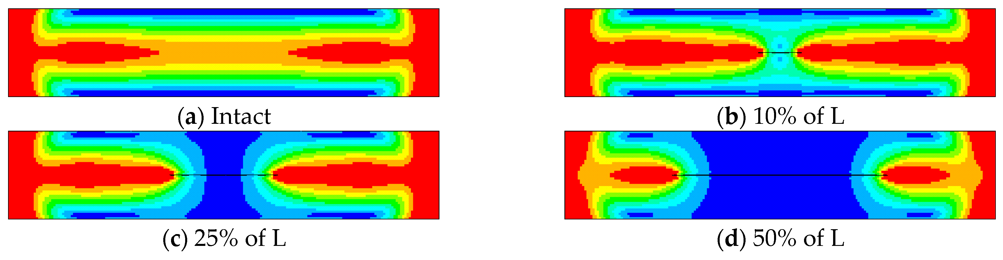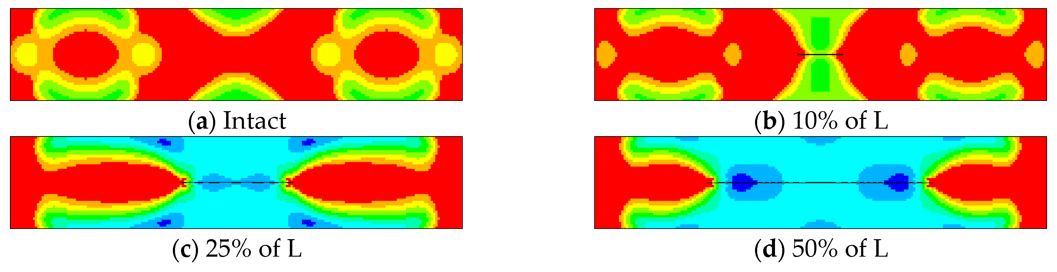 Appendix A. Von-Mises Stress Distribution of the Intact and Cracked Structures