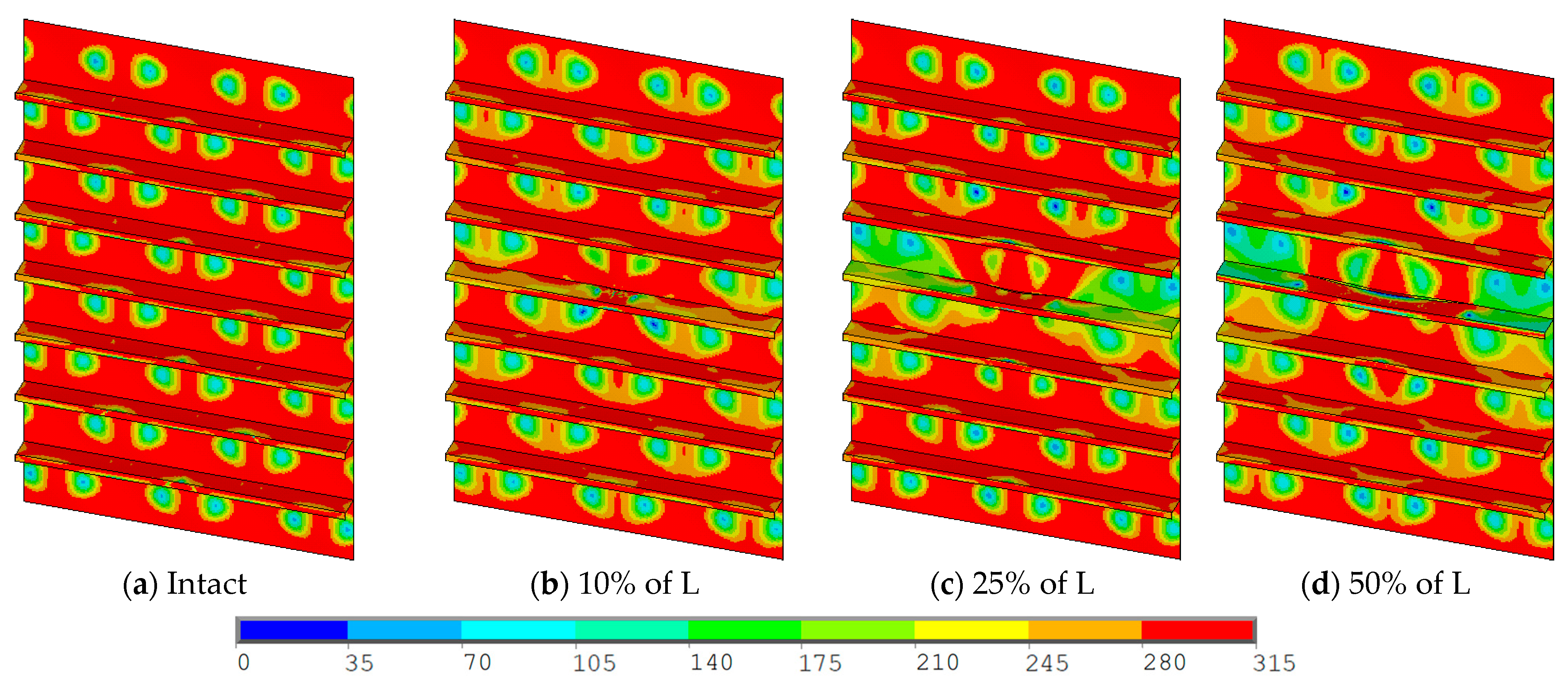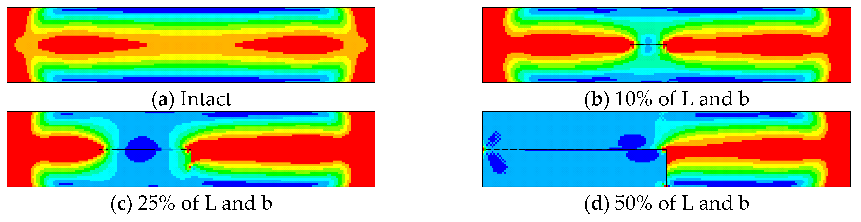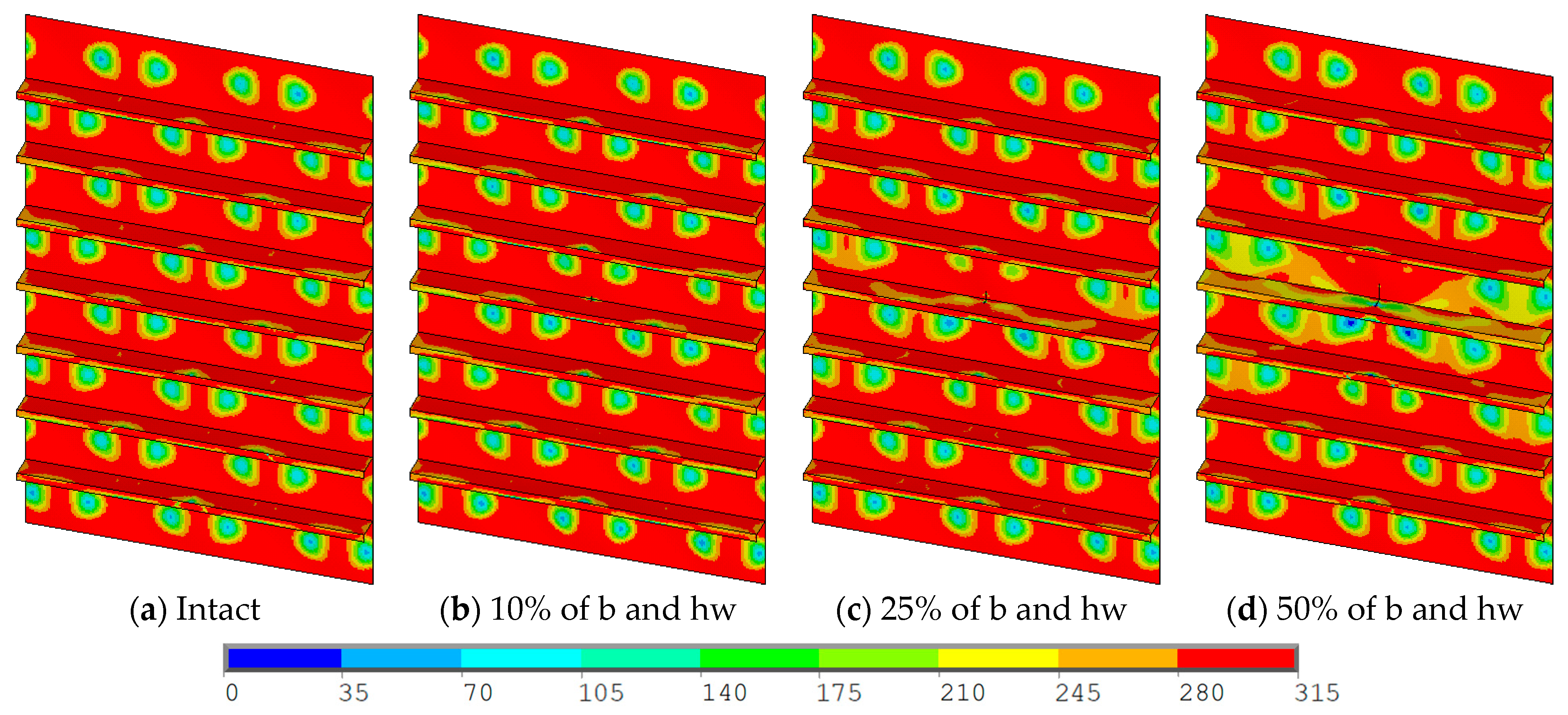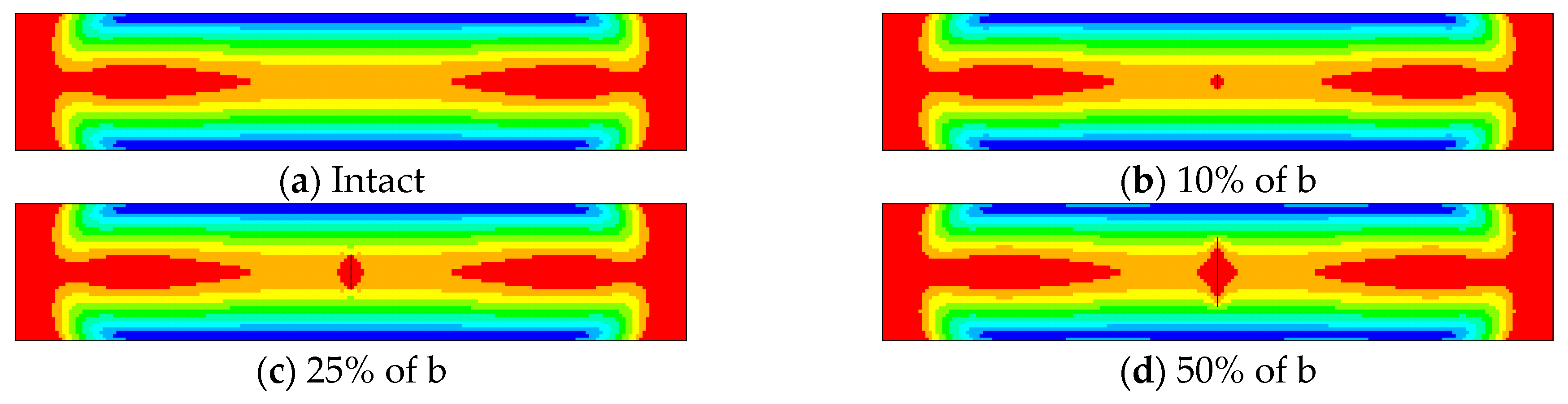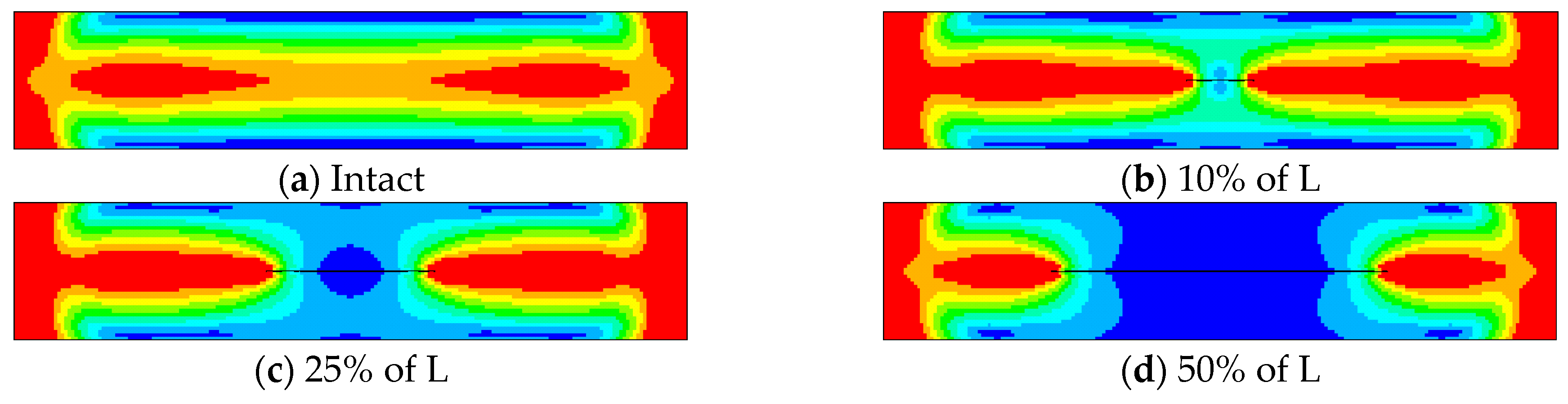 Appendix A. Von-Mises Stress Distribution of the Intact and Cracked Structures