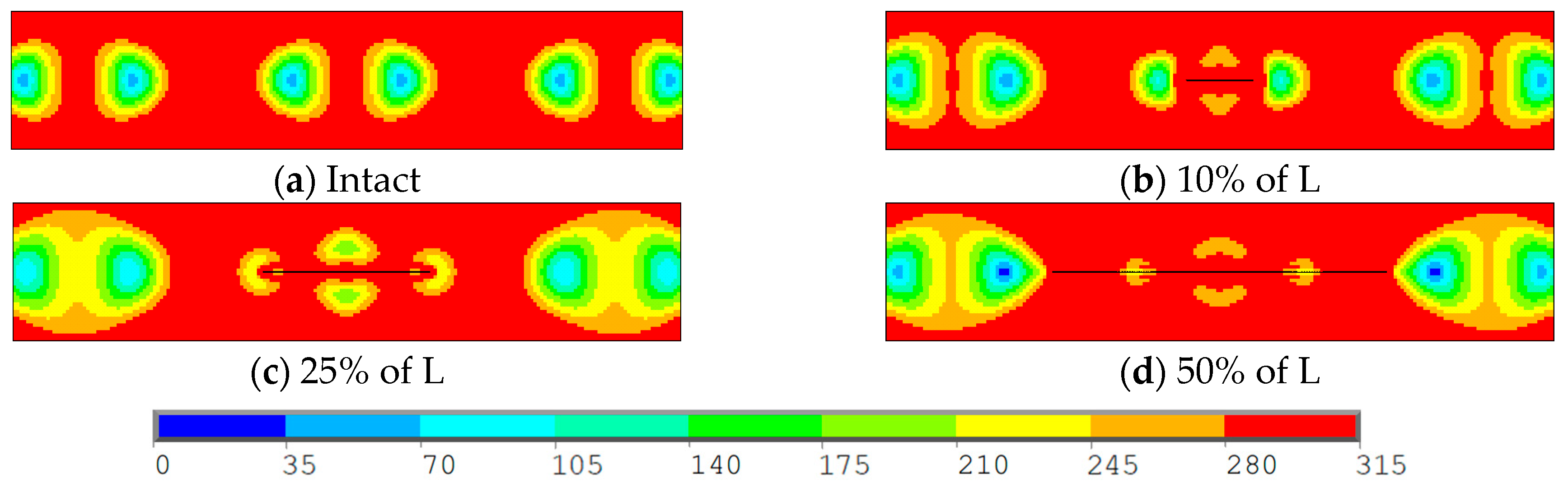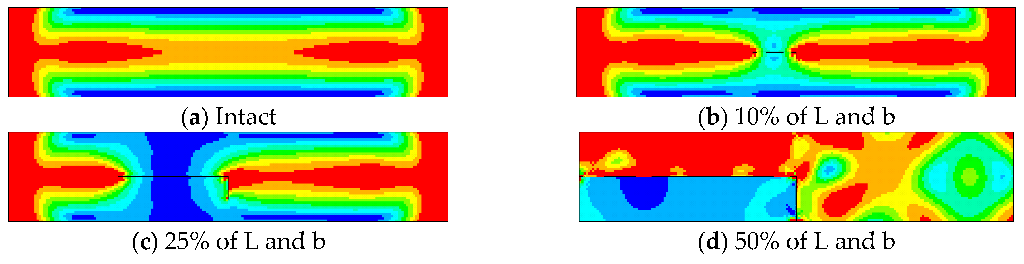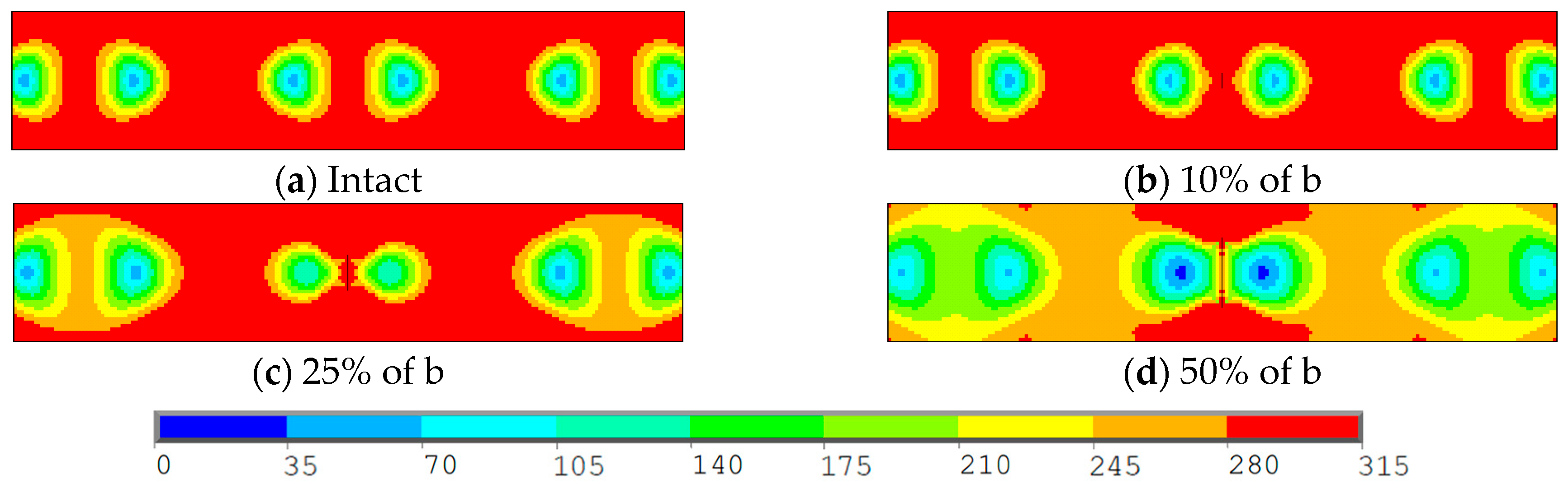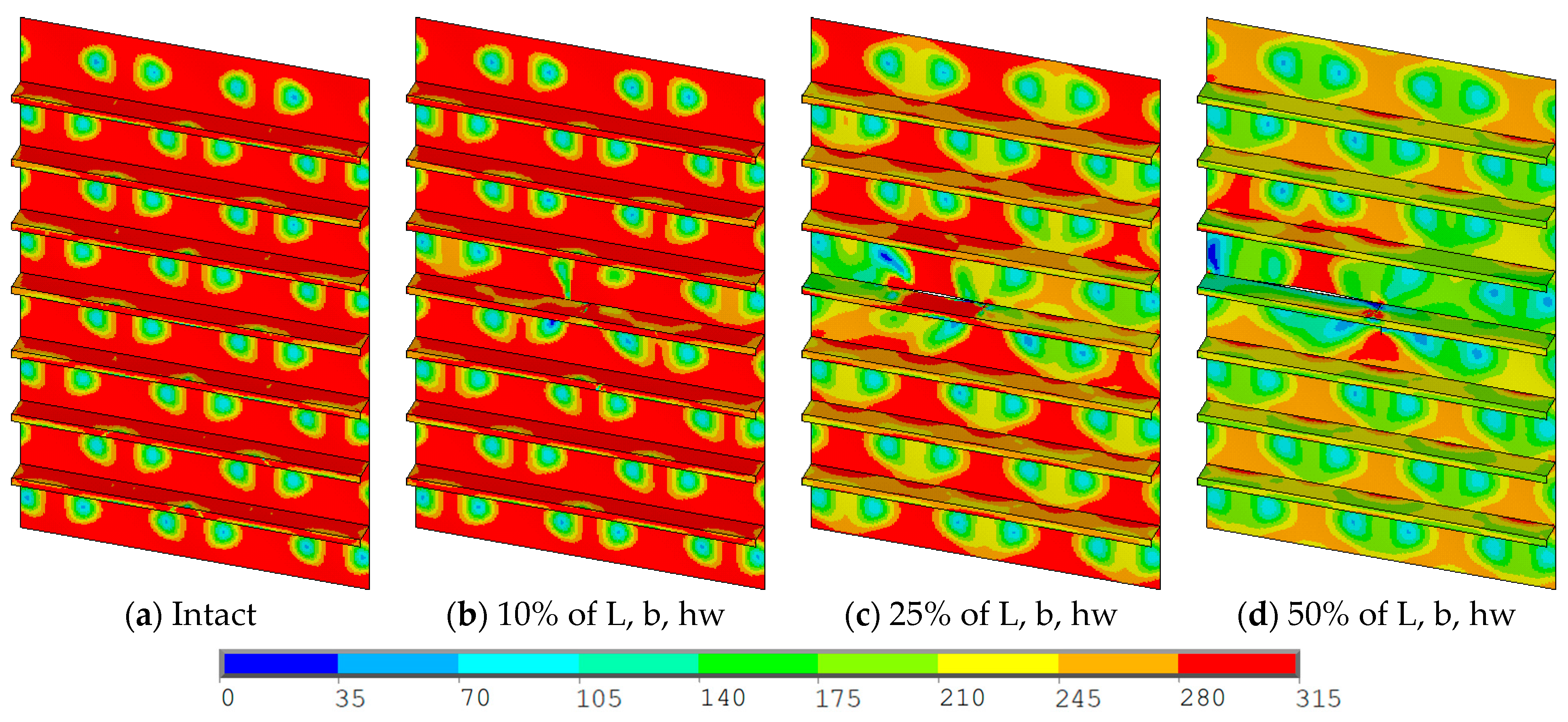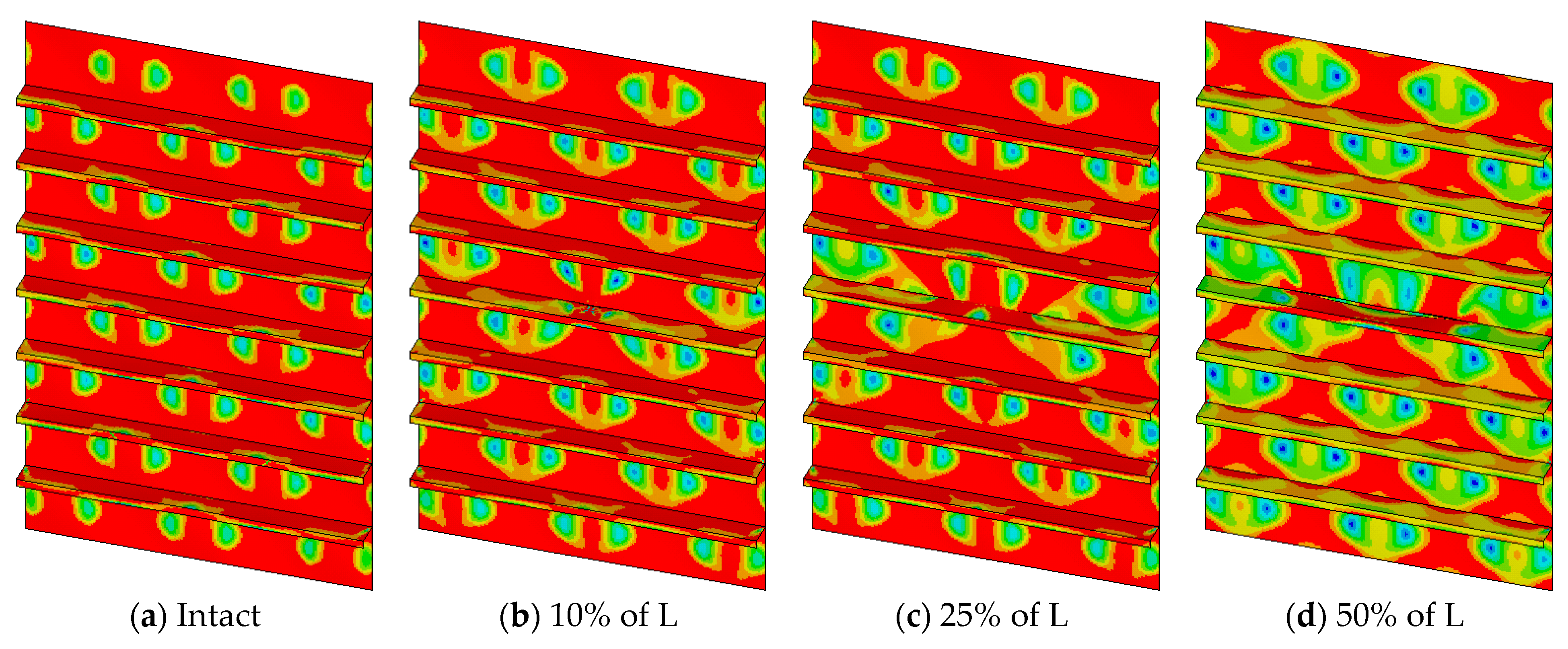 Appendix A. Von-Mises Stress Distribution of the Intact and Cracked Structures