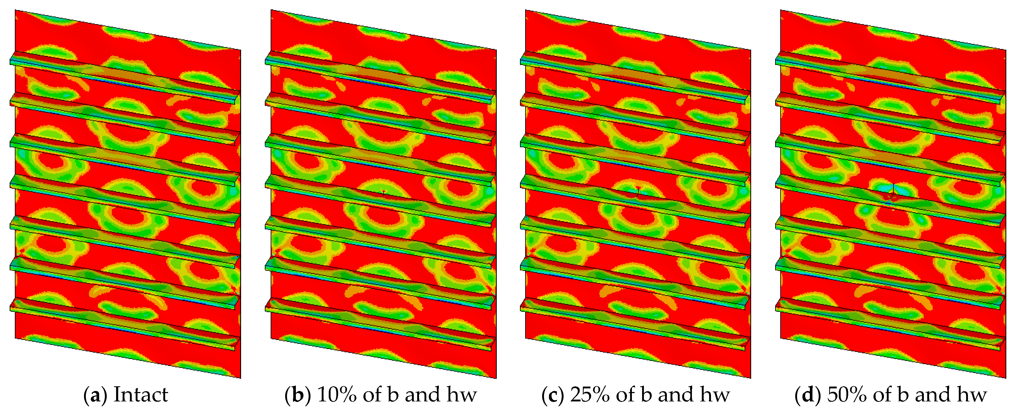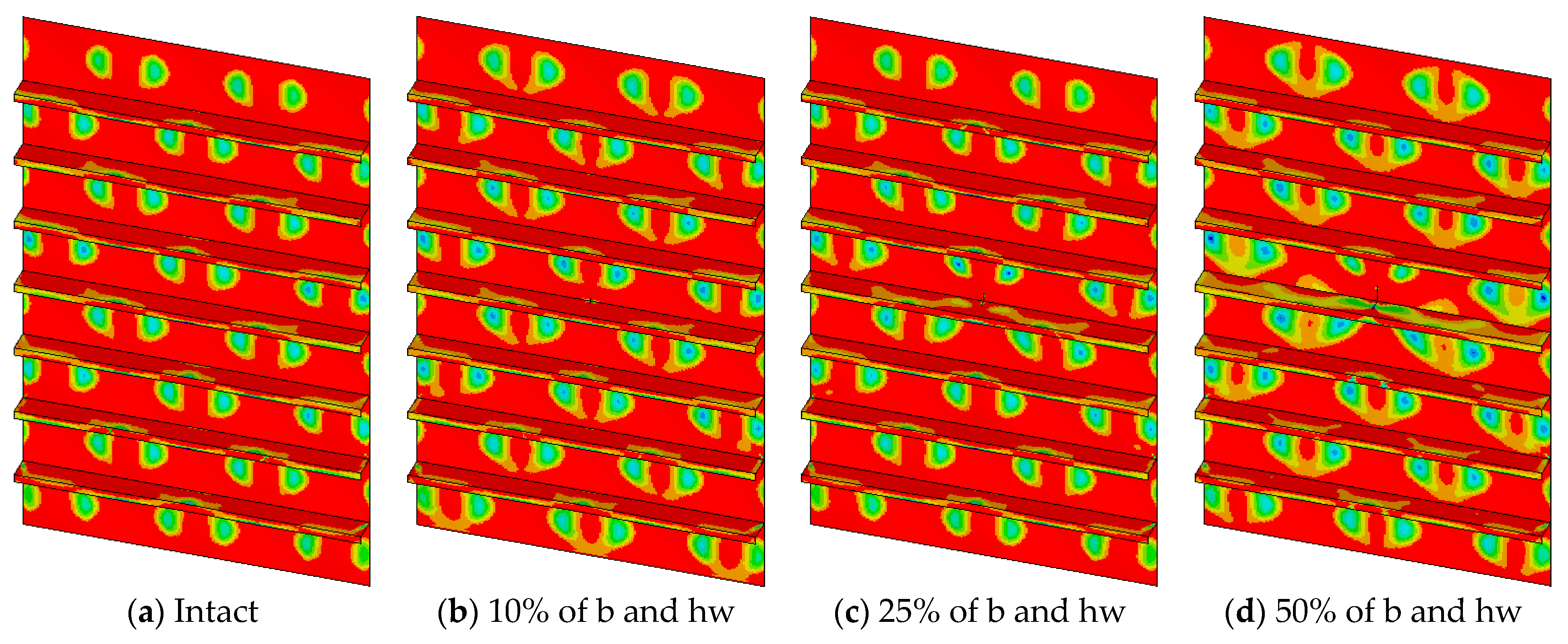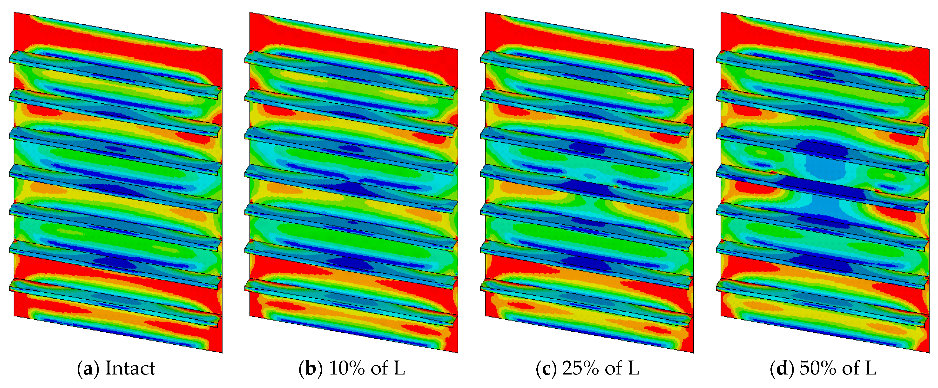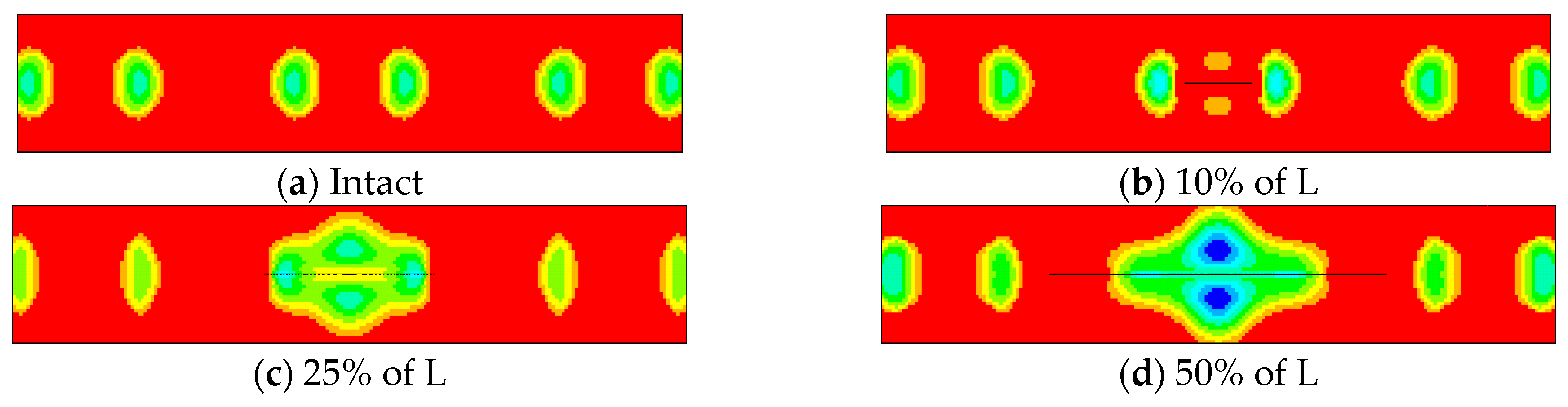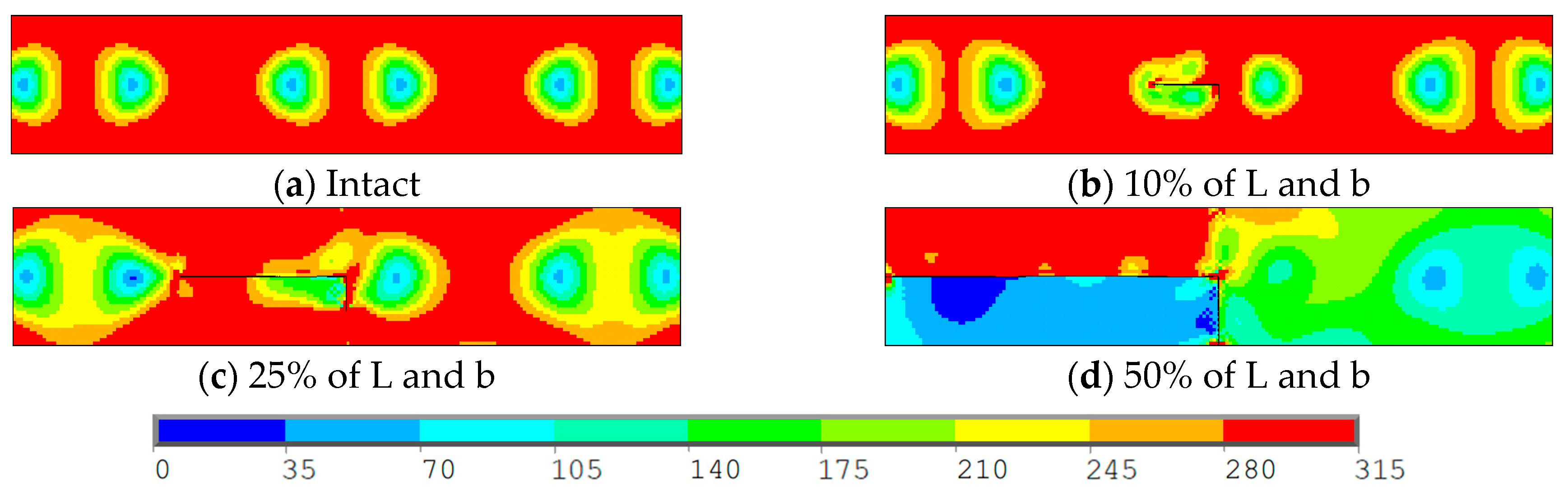 Appendix A. Von-Mises Stress Distribution of the Intact and Cracked Structures