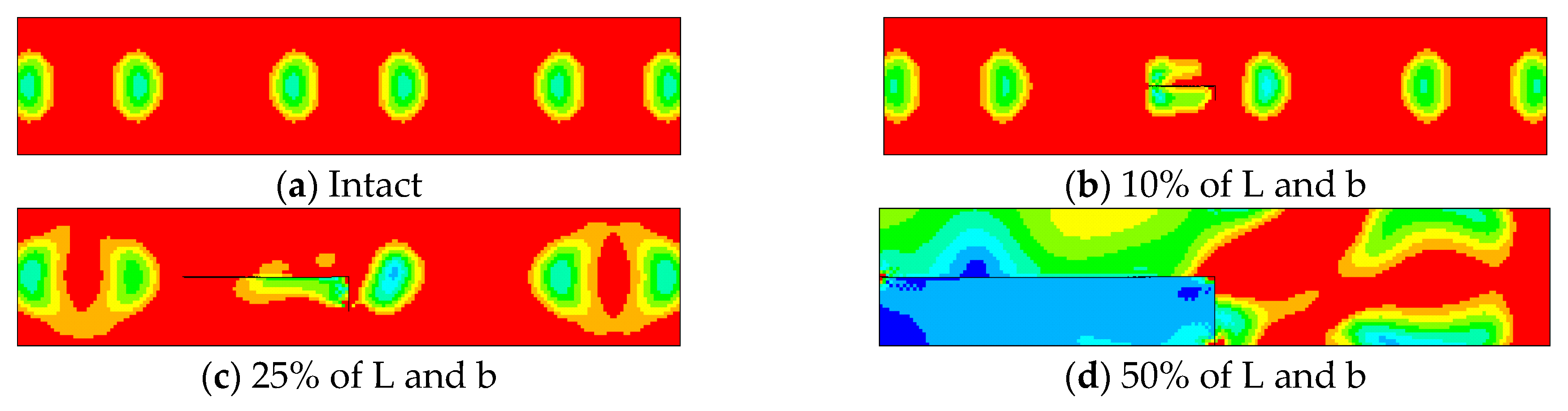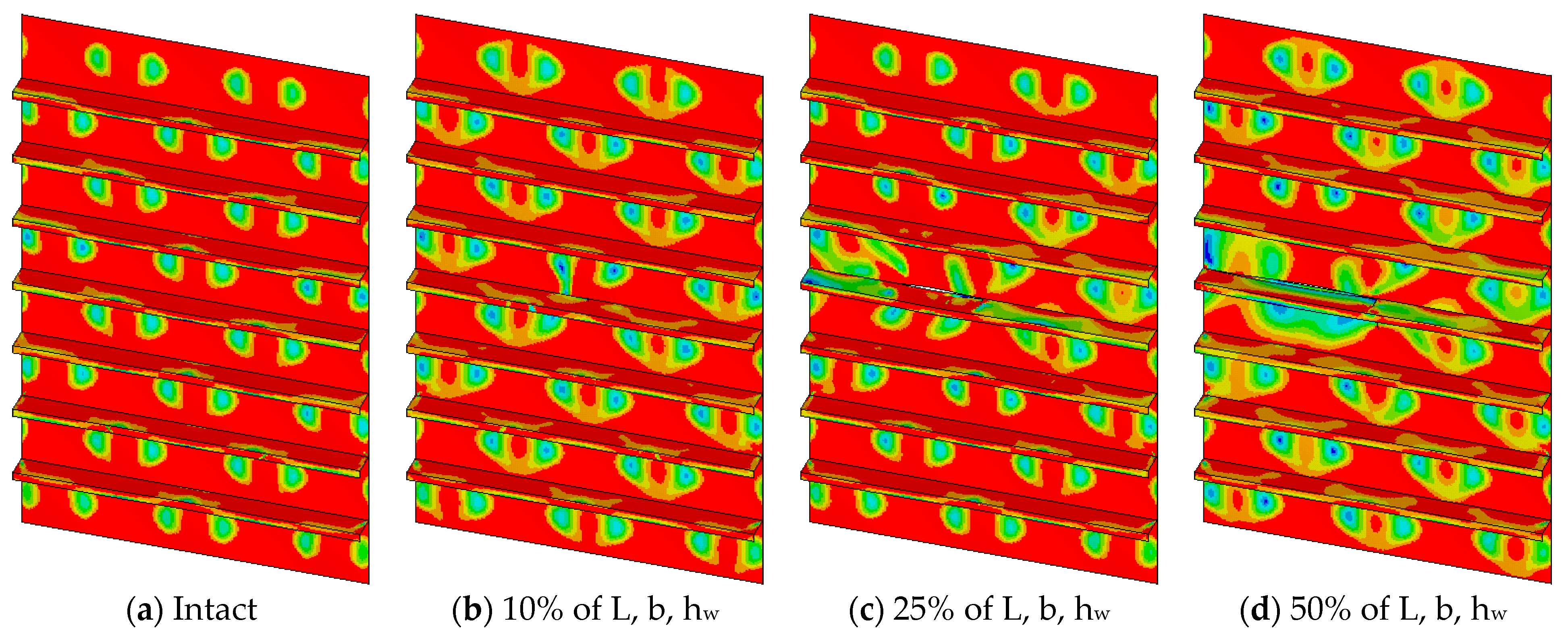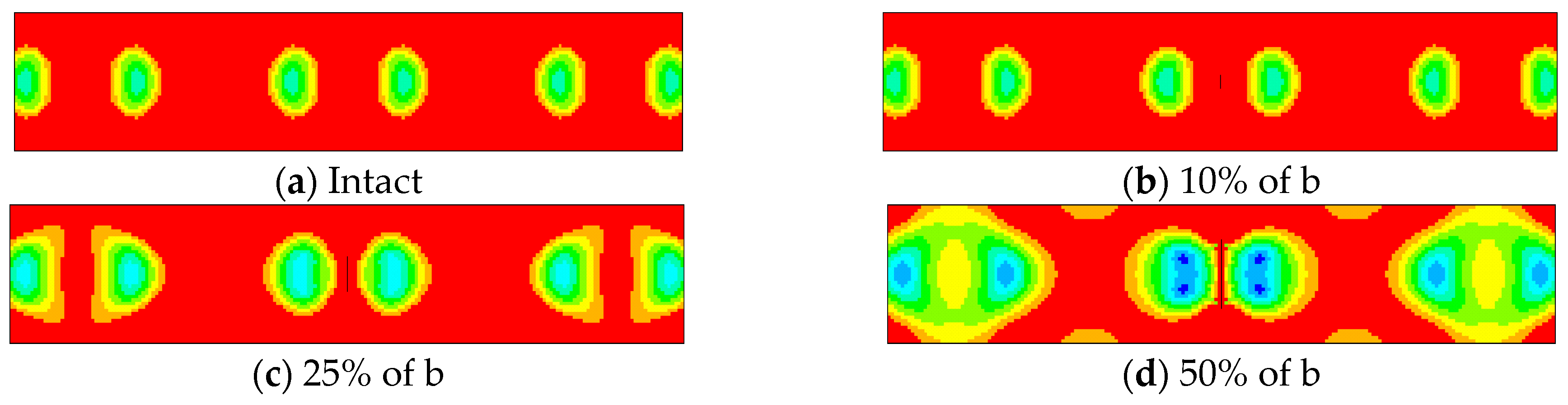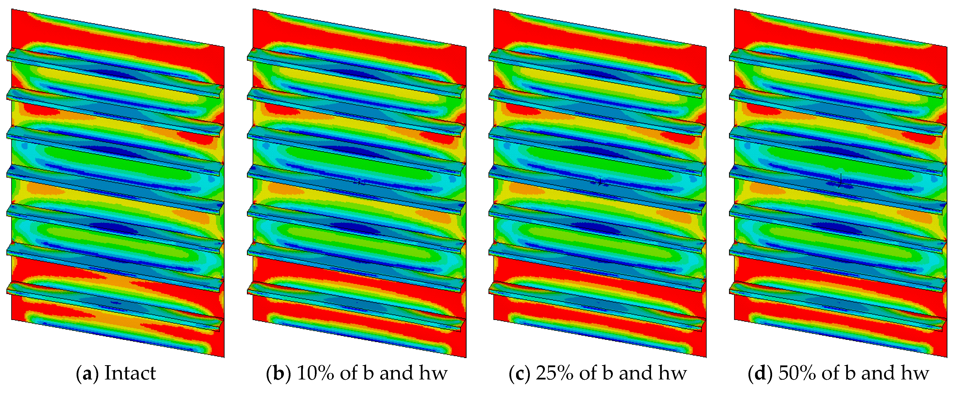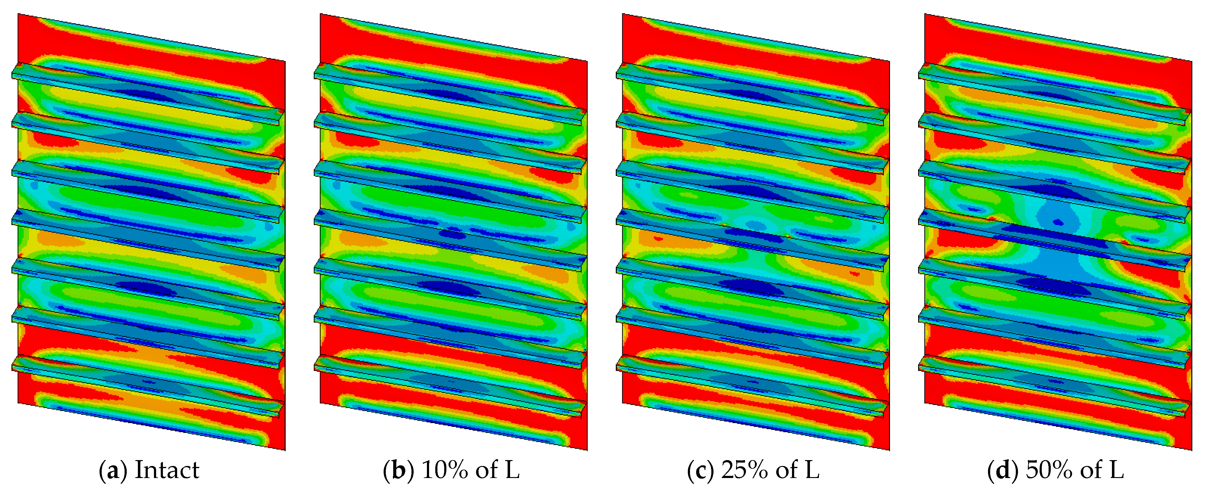 Appendix A. Von-Mises Stress Distribution of the Intact and Cracked Structures