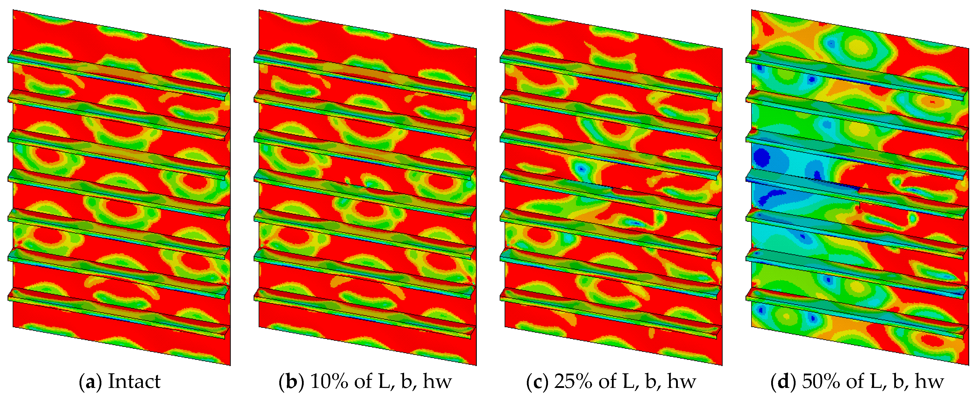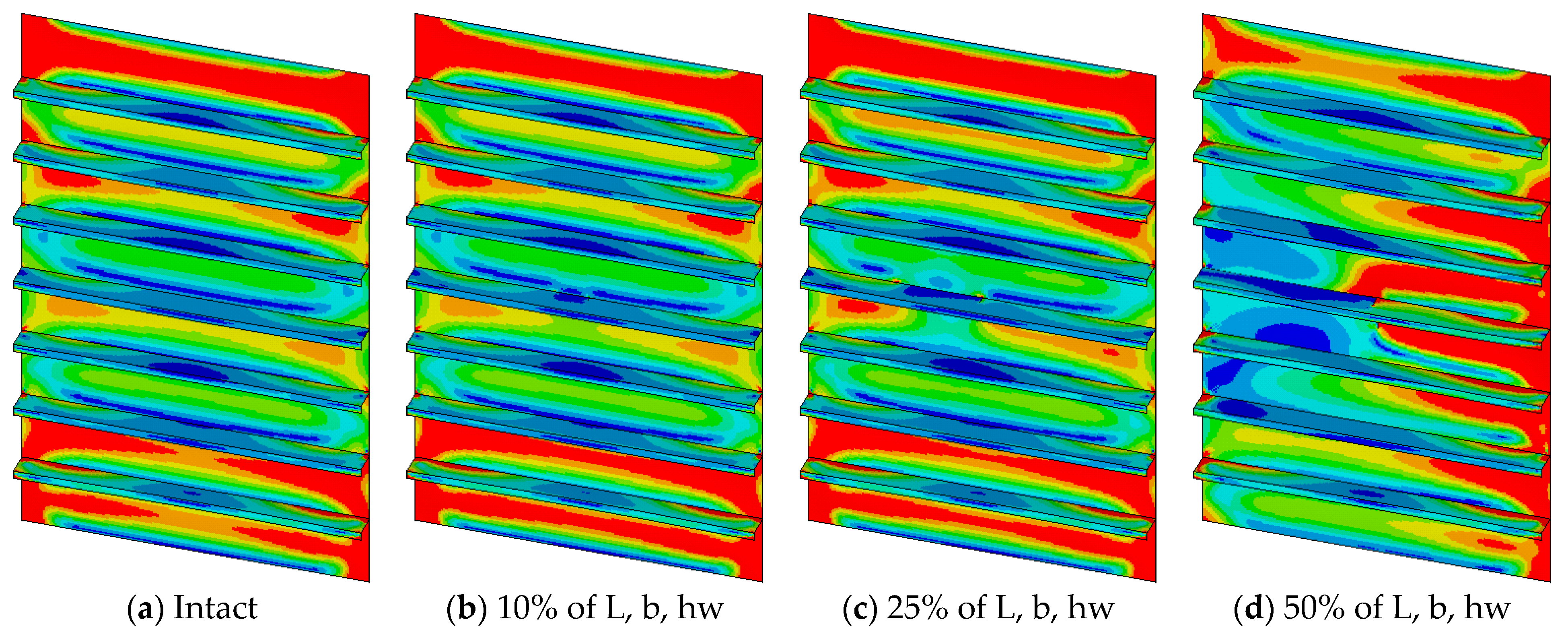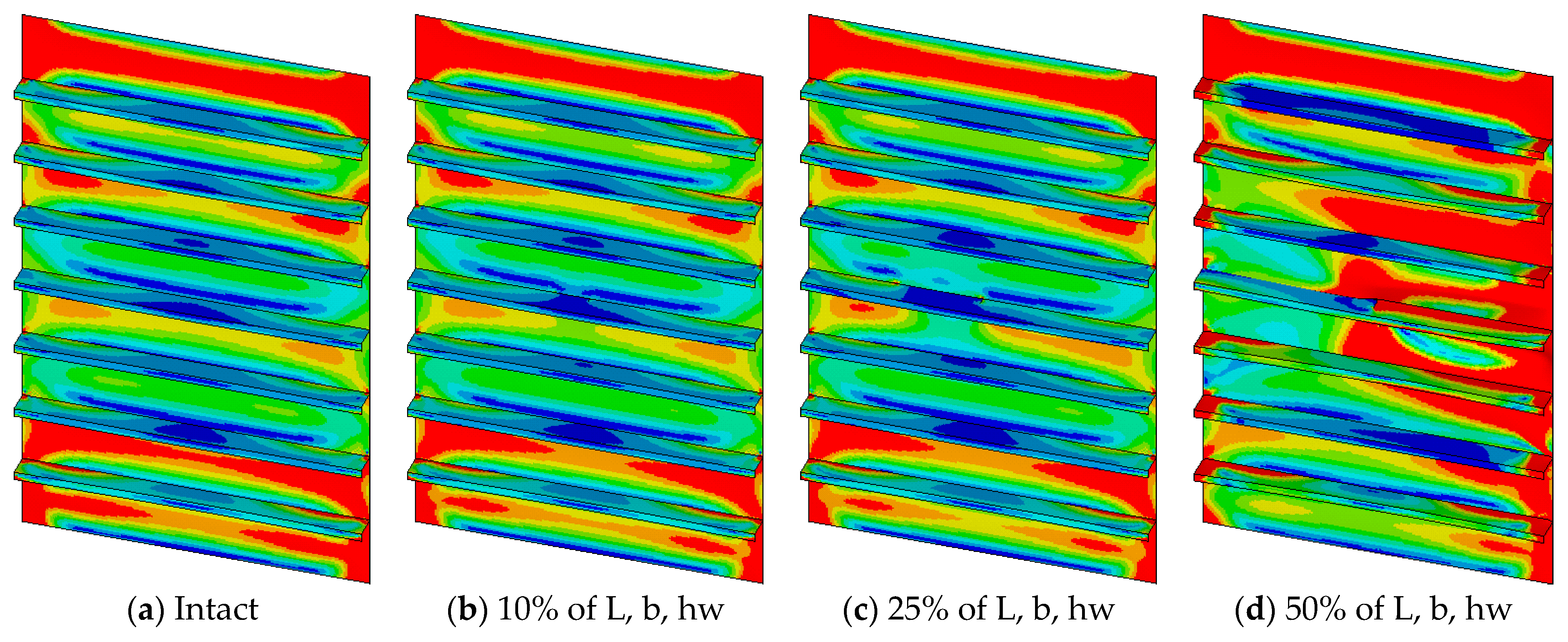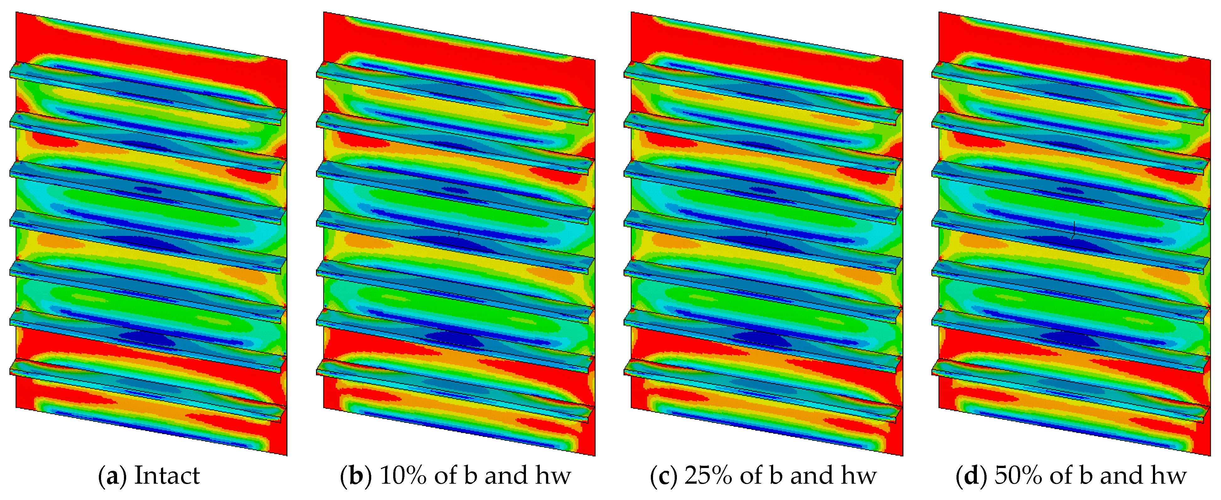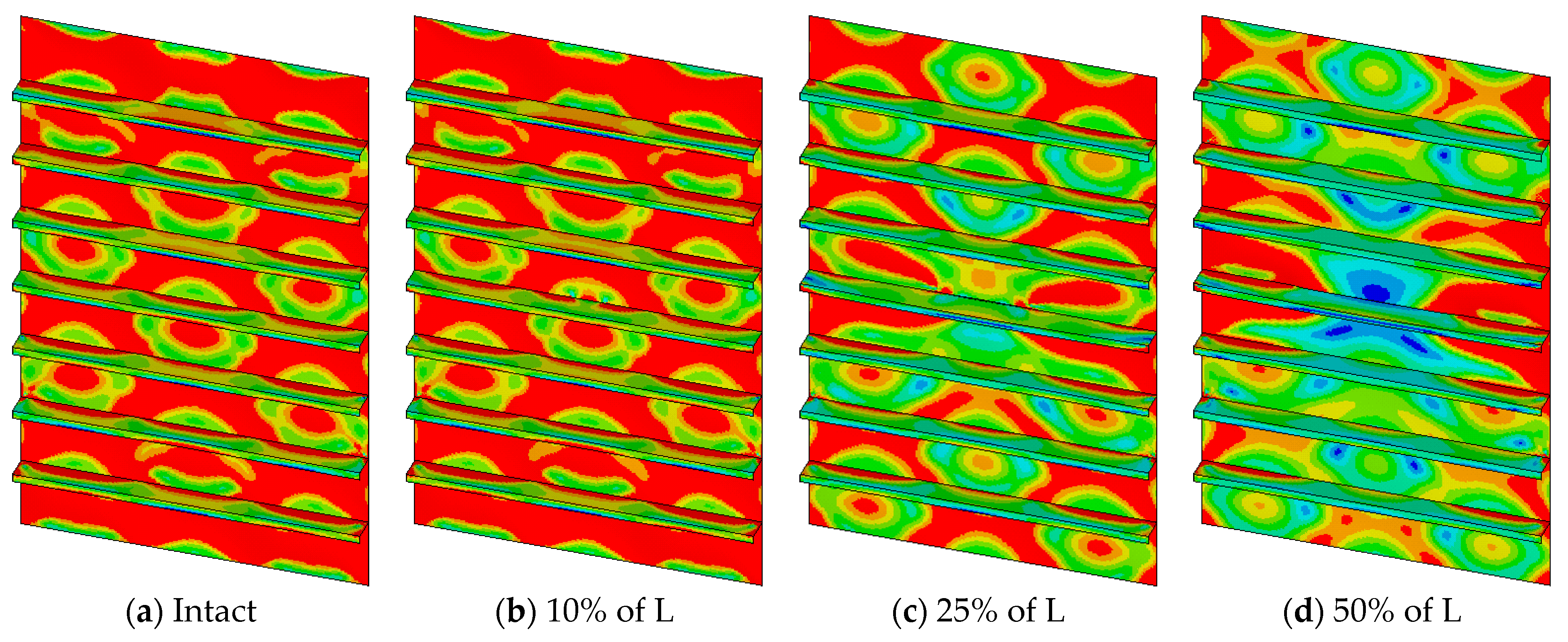 Appendix A. Von-Mises Stress Distribution of the Intact and Cracked Structures