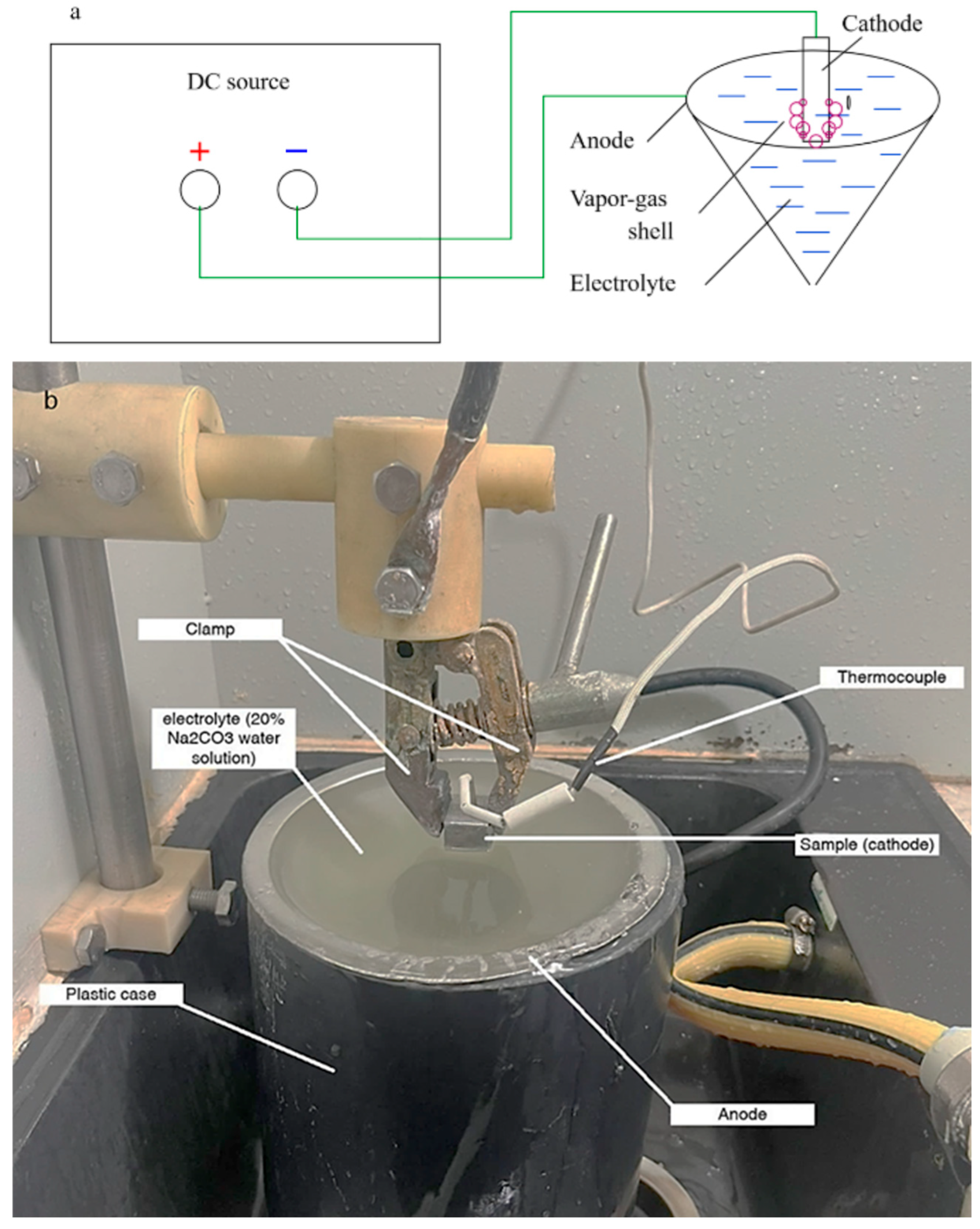 EPT relies on the creation of a plasma discharge between a metallic workpiece, acting as the cathode, and a liquid electrolyte. Upon exceeding a critical voltage (usually 120–400 V), a localized plasma sheath forms around the cathode, achieving temperatures in the range of 5000–8000 K [