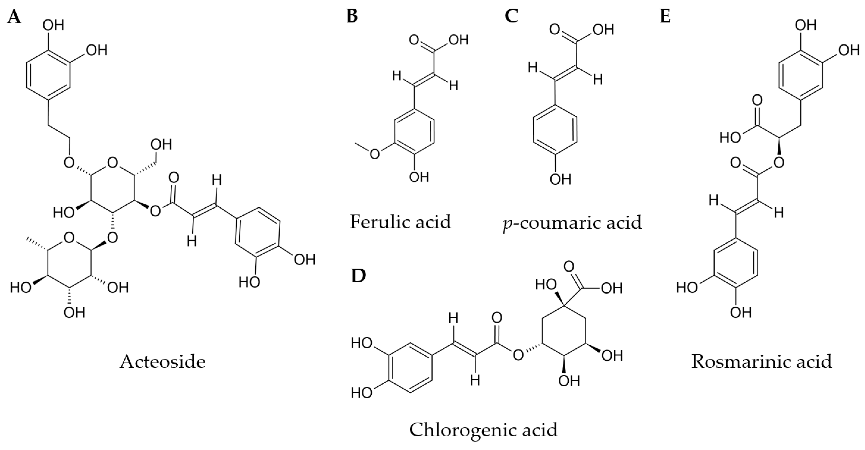 Acteoside | −4.80 | −3.48 | −5.10 | −4.83 | −7.94 |