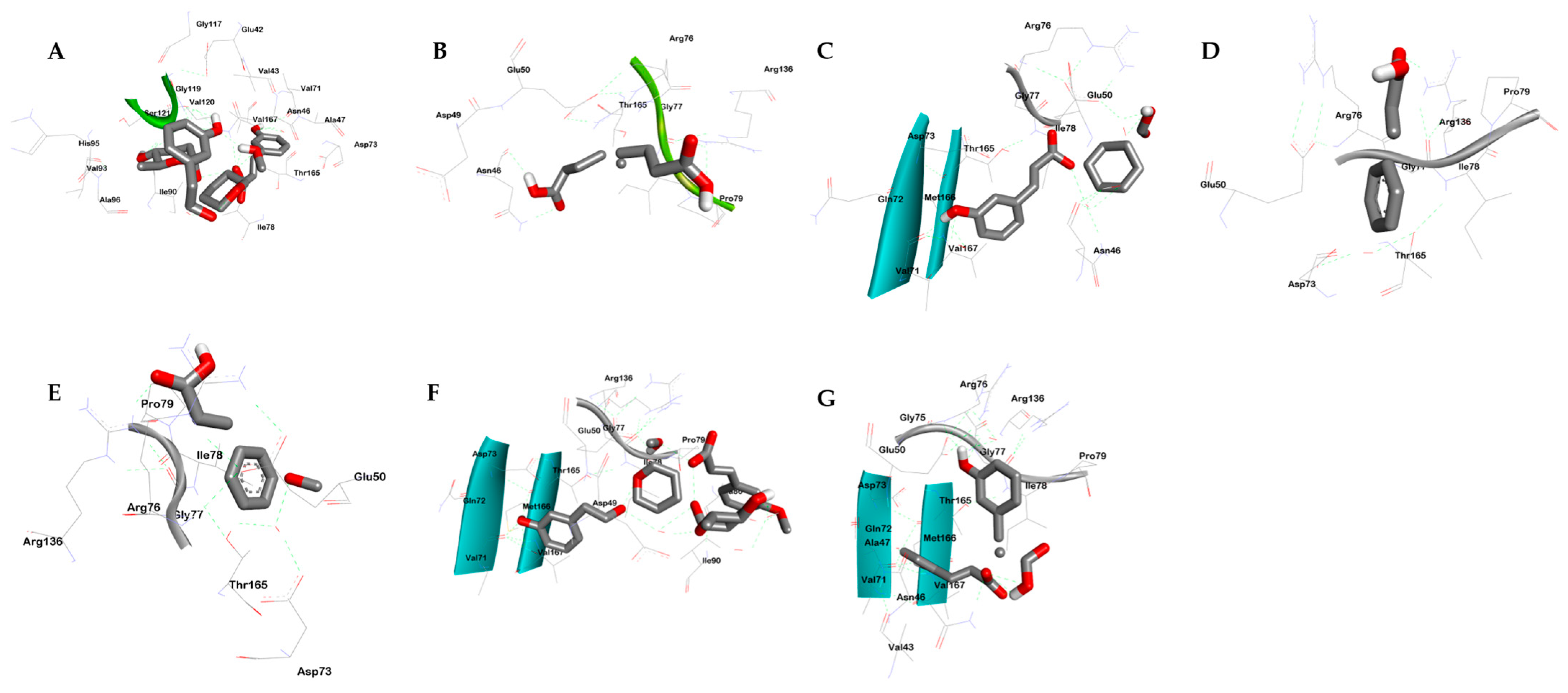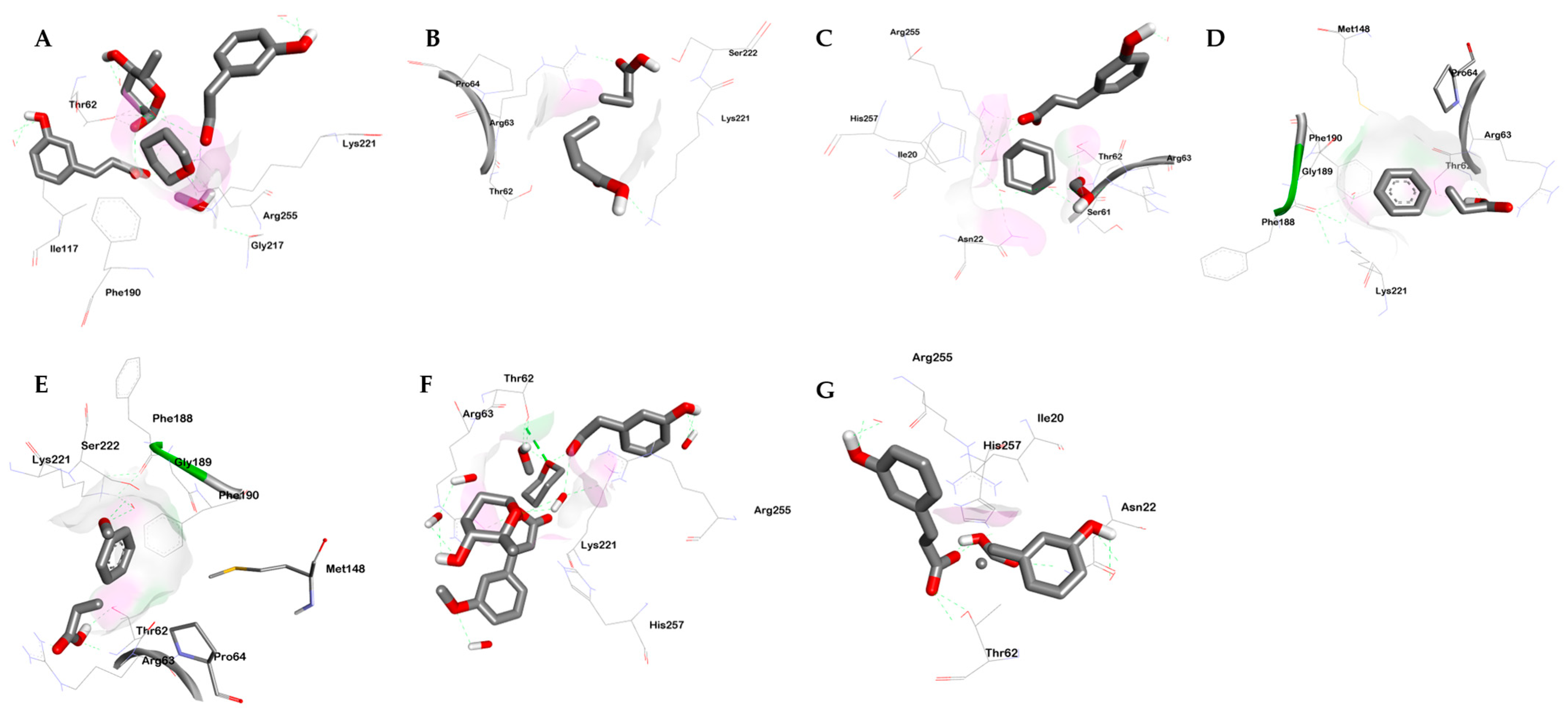 Ferulic acid | −3.80 | 1.64 mM |