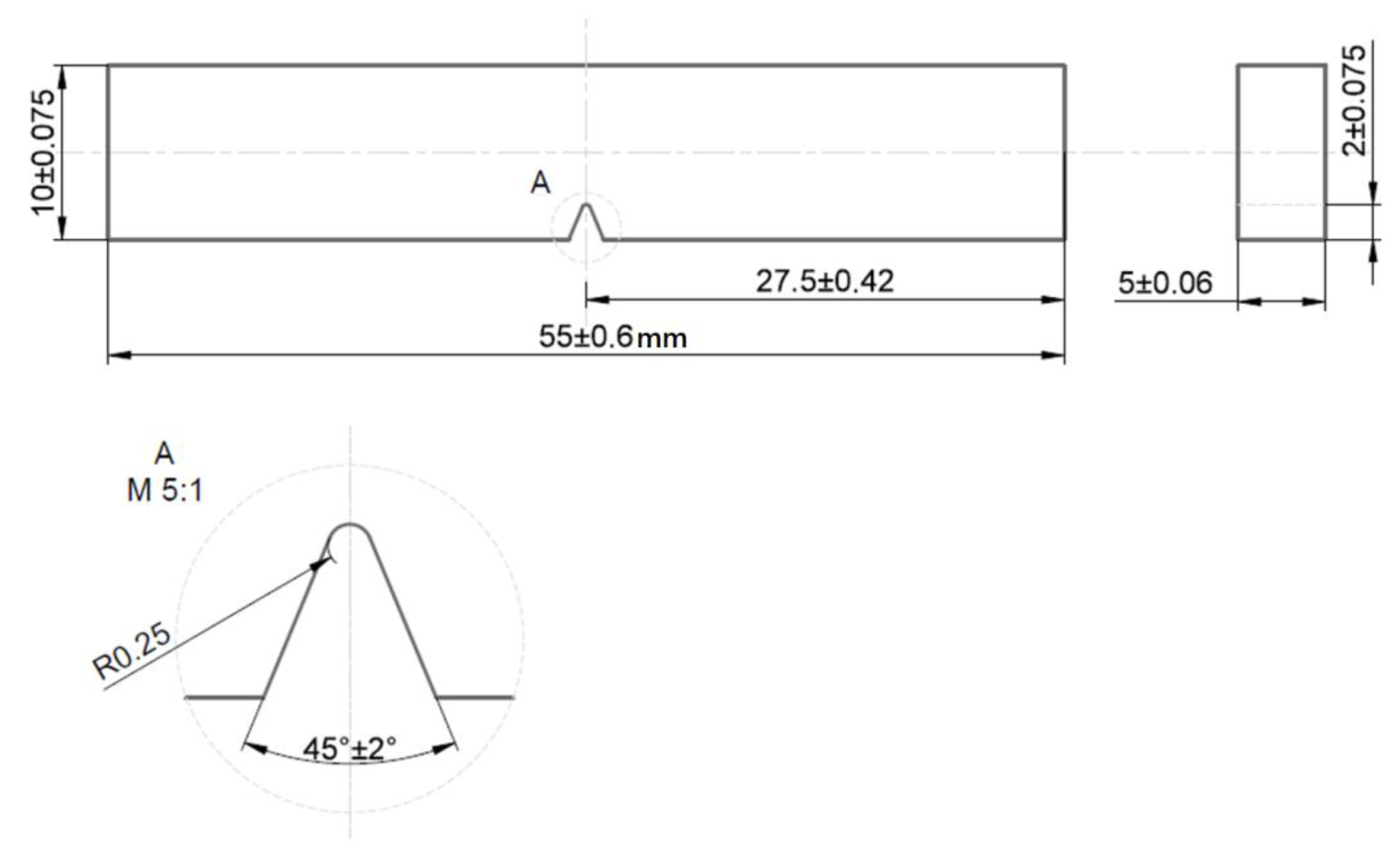 - ISO 148-1:2009; Metallic Materials—Charpy Pendulum Impact Test—Part 1: Test Method. International Organization for Standardization: Geneva, Switzerland, 2009.