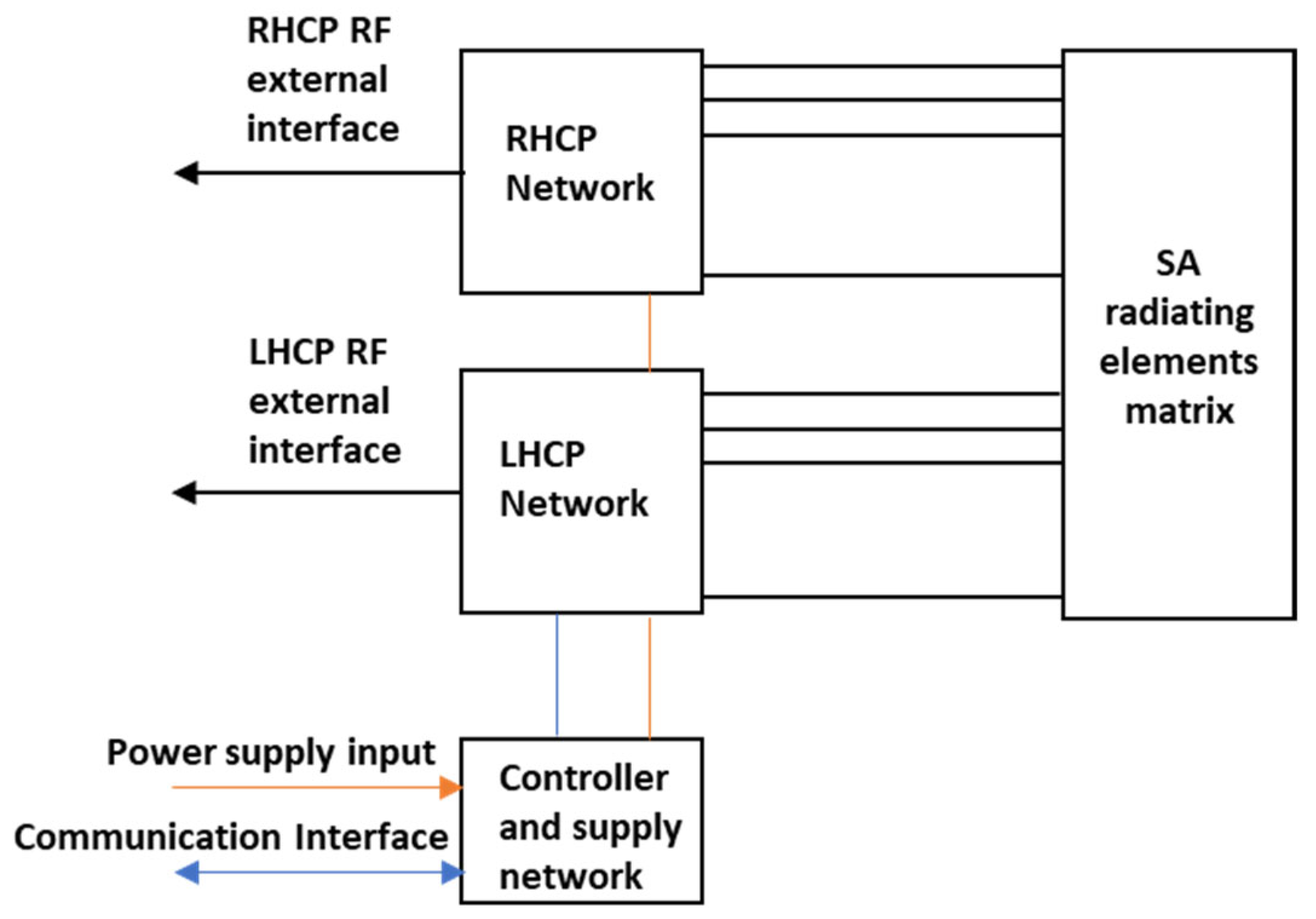 Finally, a dedicated circuit manages the DC power supply and controls the beamforming networks. This unit handles power distribution and enables communication with external systems for SA control.
