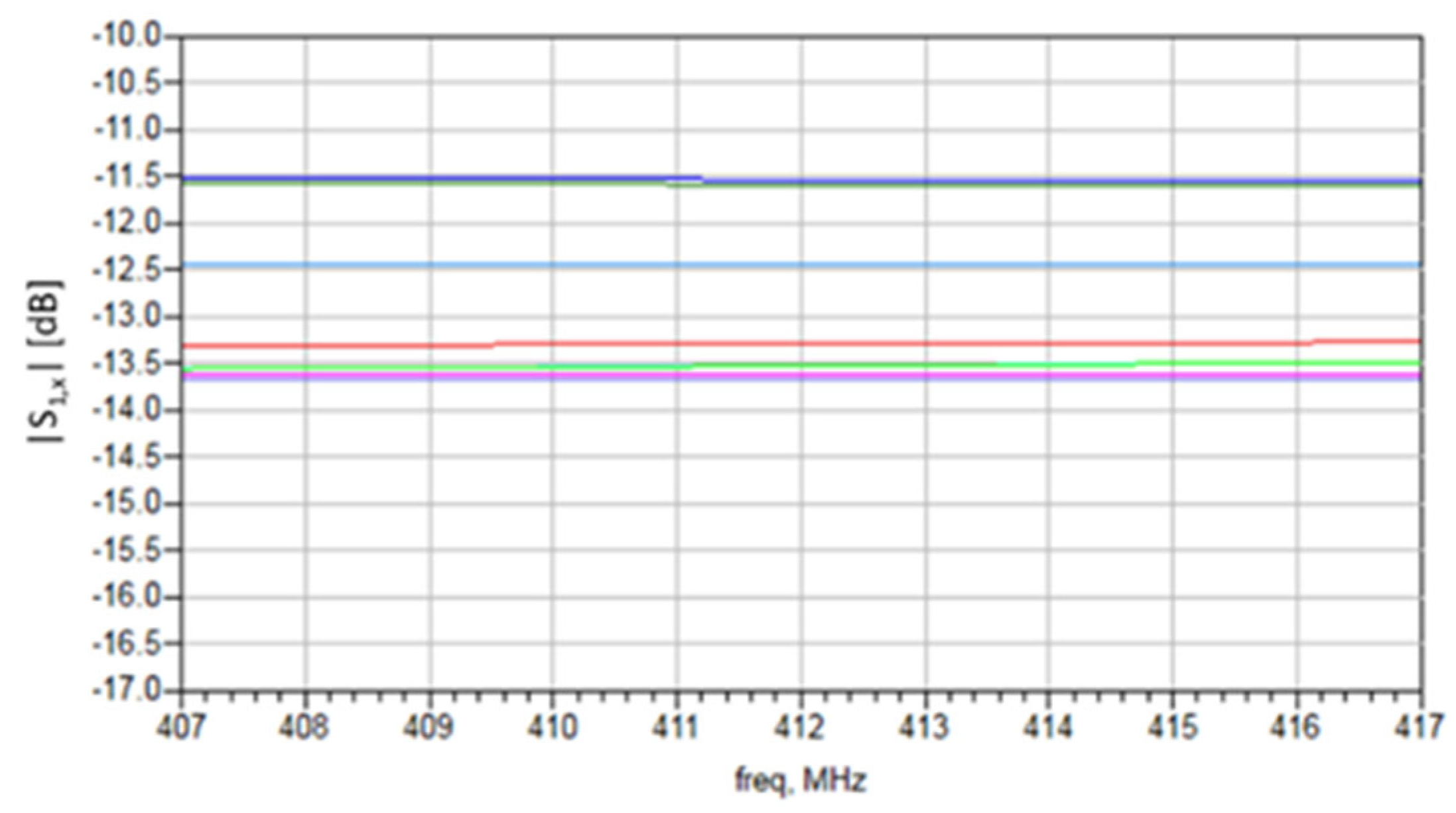 Figure 19 and show values below −10 dB across the entire frequency band of interest, from 407 MHz to 417 MHz.