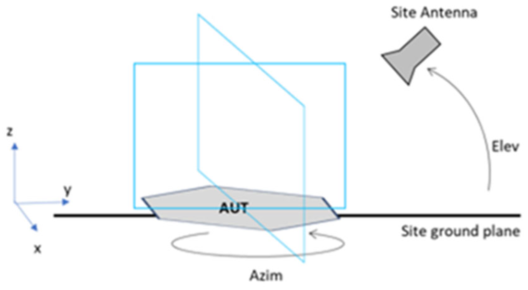 The radiation pattern of the SA array was measured by placing it on a reference ground plane and recording the received power as a function of the incidence angle of the transmitting antenna over the two principal orthogonal planes. A schematic diagram of the measurement setup is shown in