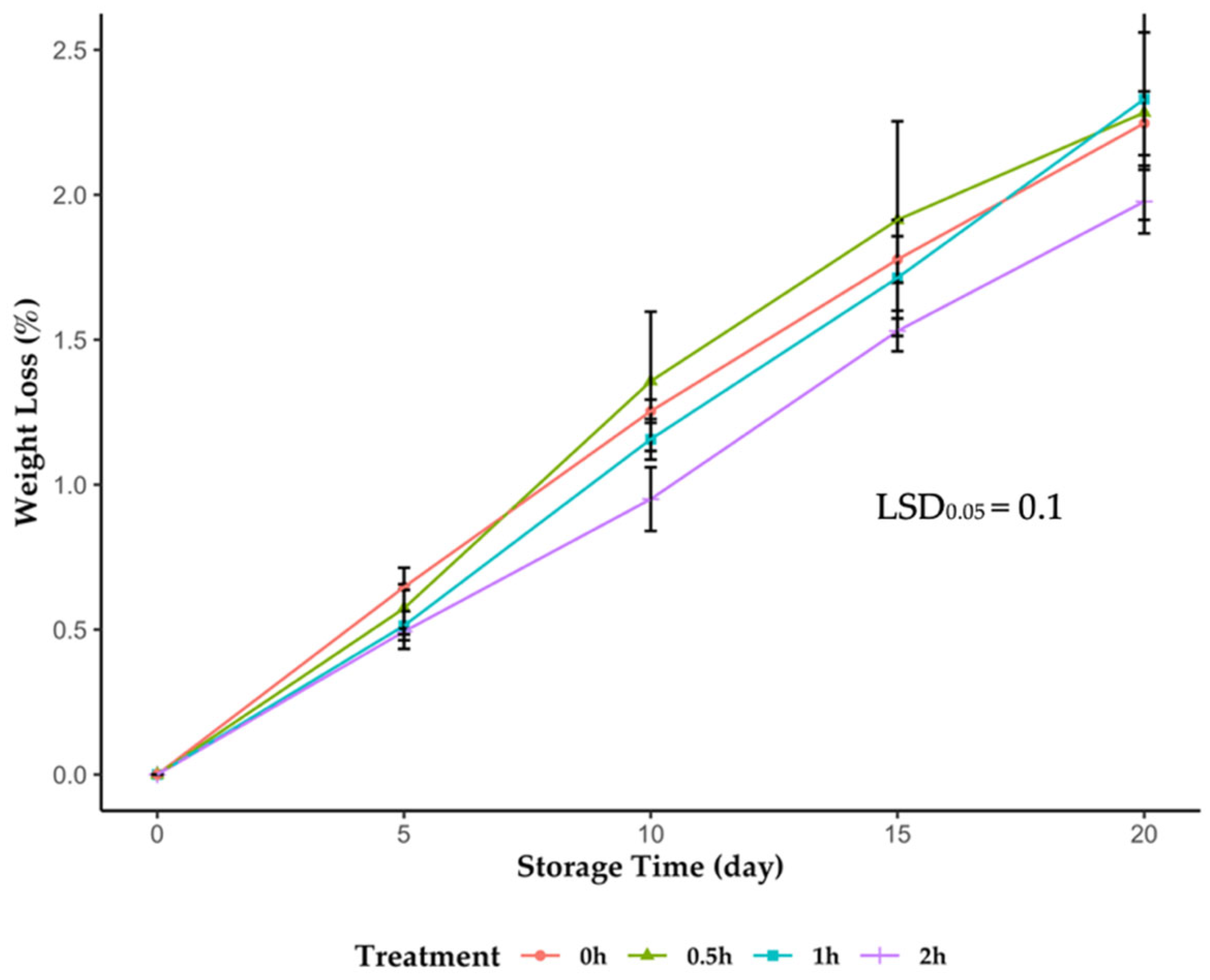 - Gidado, M.J.; Gunny, A.A.N.; Gopinath, S.C.B.; Ali, A.; Wongs-Aree, C.; Salleh, N.H.M. Challenges of Postharvest Water Loss in Fruits: Mechanisms, Influencing Factors, and Effective Control Strategies—A Comprehensive Review. J. Agric. Food Res. 2024, 17, 101249. [Google Scholar] [CrossRef]
