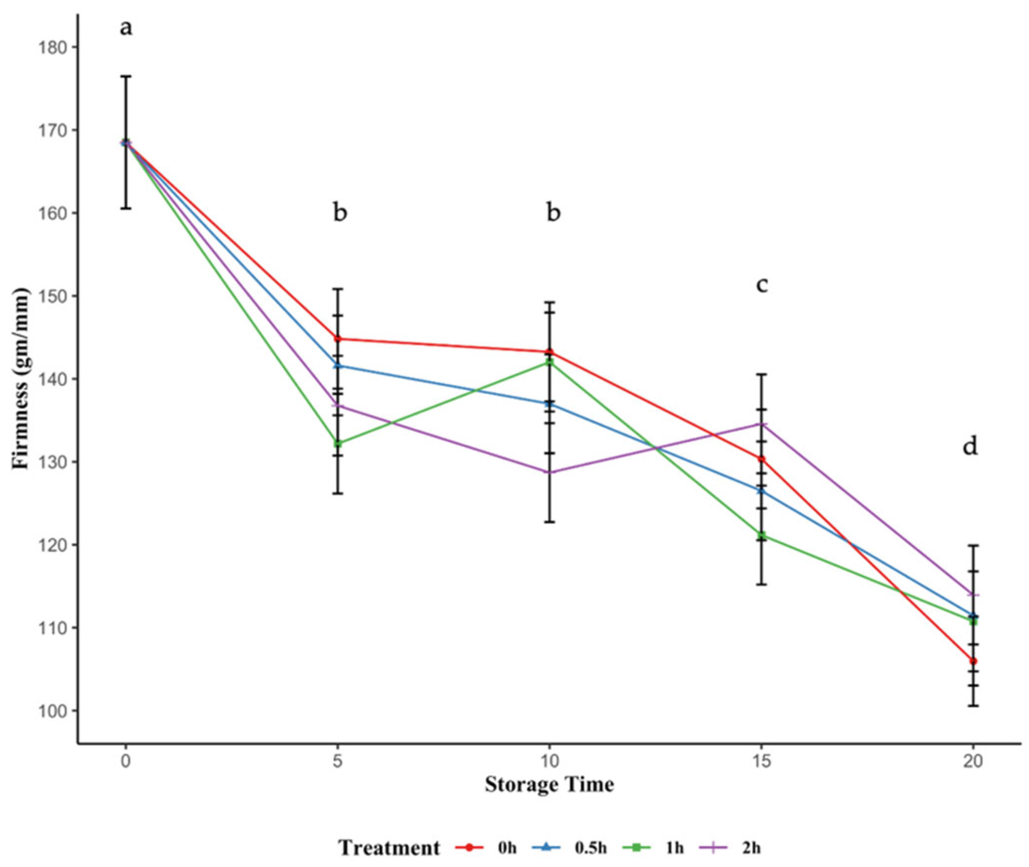 | 0 h | 14.31 ± 0.31 b | 0.0001709 *** | 11.37 |
