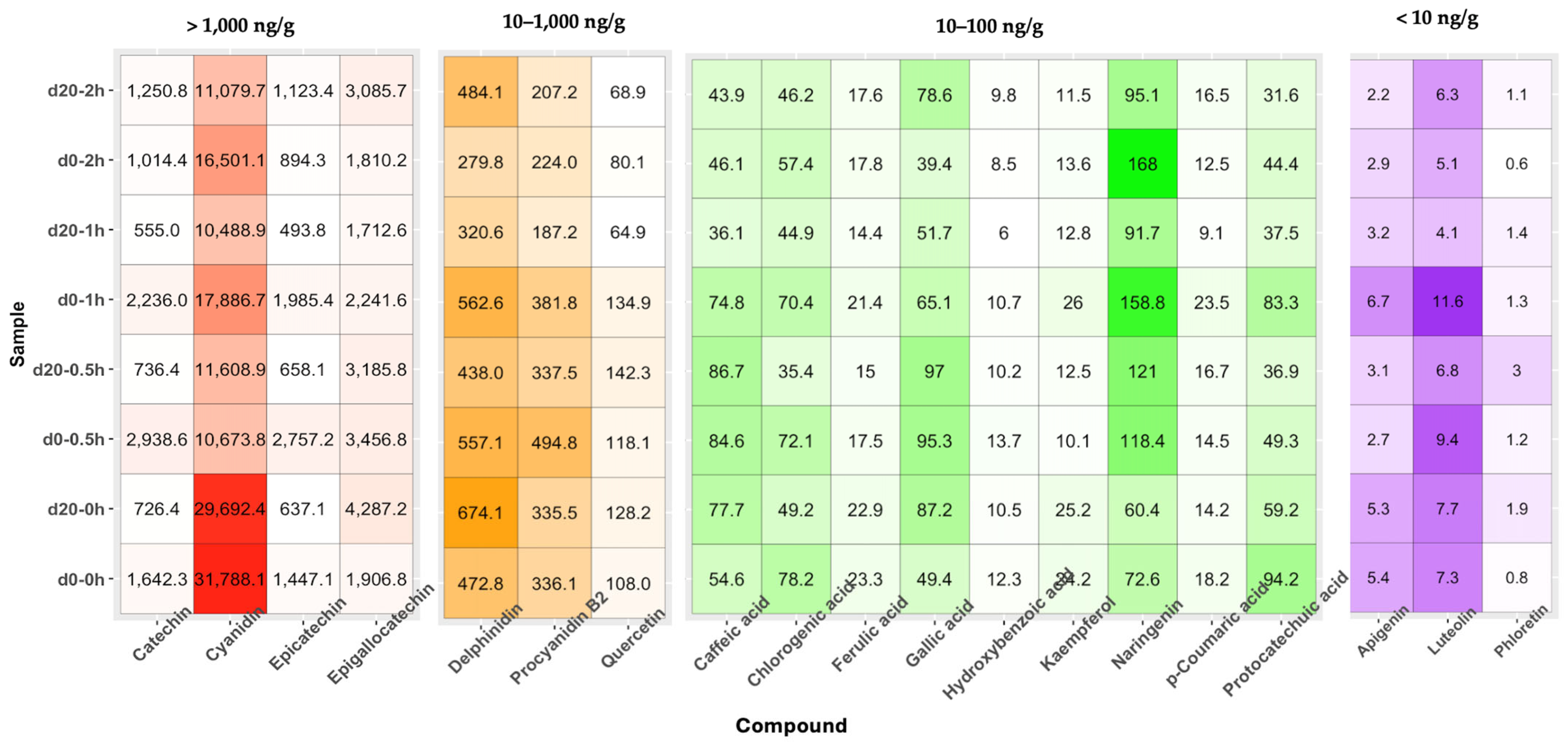 3.7. Antioxidant Phenolic Compounds in Blackcurrants