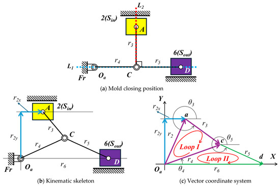Figure 8 illustrates the kinematic skeleton and vector coordinate system of the Stephenson−II mechanism.