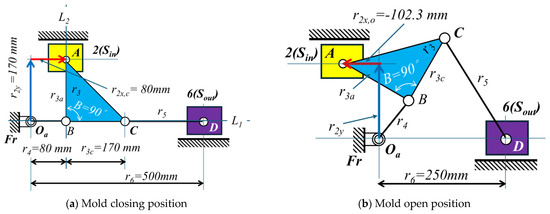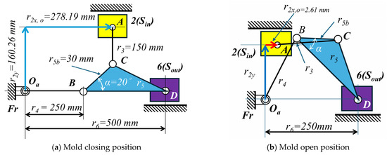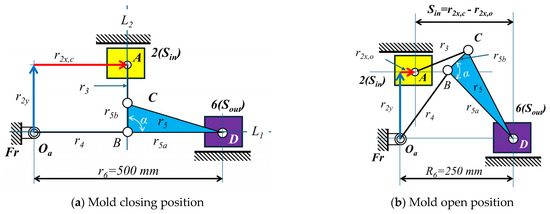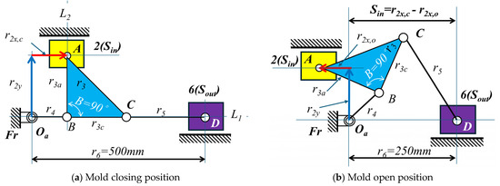 - A diagrammatic method is used to determine the position of r2 when the mold is closed and open. Therefore, the stroke of the input is given by Sin = r2x,c−r2x,o.