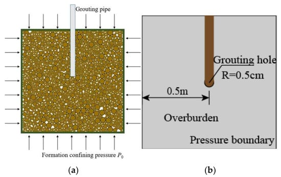 - Zhou, Z.J.; Jiang, Y.Y.; Wang, X.D.; Yu, X.M.; Wang, D.Z. Numerical simulation method of grouting diffusion for foundation with overburden and its application. Chin. J. Undergr. Space Eng. 2017, 13, 646–650. (In Chinese) [Google Scholar]