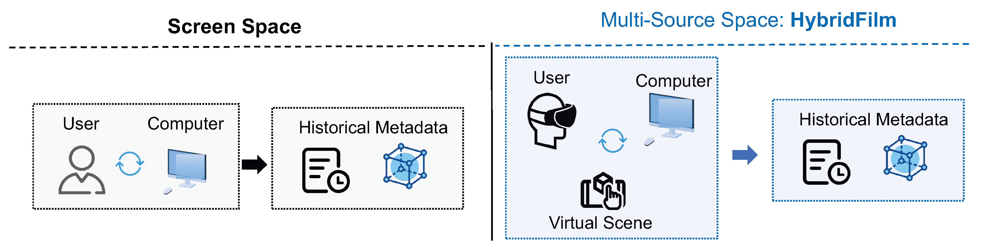 Chicago/Turabian StyleZhou, Lisha, Meng Zhang, Yapeng Liu, and Dongliang Guo. 2025. "HybridFilm: A Mixed-Reality History Tool Enabling Interoperability Between Screen Space and Immersive Environments" Applied Sciences 15, no. 15: 8489. https://doi.org/10.3390/app15158489