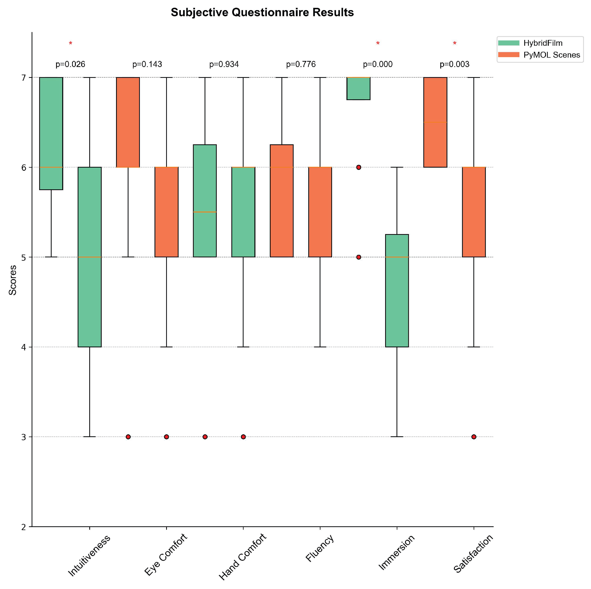 - Usability and Effectiveness Verification: Building upon the historical tools used in molecular 3D model analysis software, the usability and effectiveness of HybridFilm are validated through practical assessment.