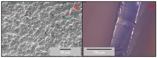 (a) SEM image of the final surface of an electrodeposited nickel on ABS []; (b) OM image of the cross-section of a deposited nickel wall on a removed PLA mandrel.