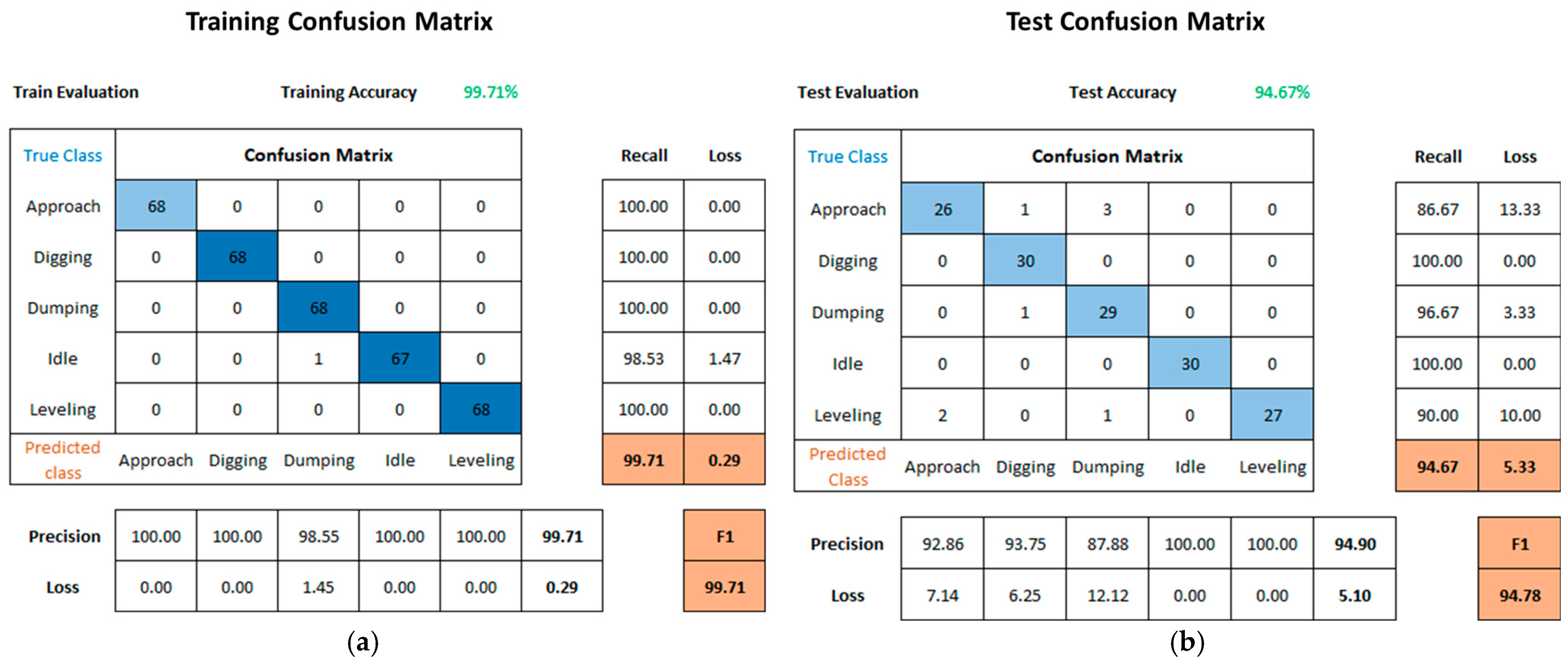 - Comprehensive performance evaluation of CNN-LSTM for the single-stream and two-stream CNN-LSTM for multi-stream activity recognition of the excavator.