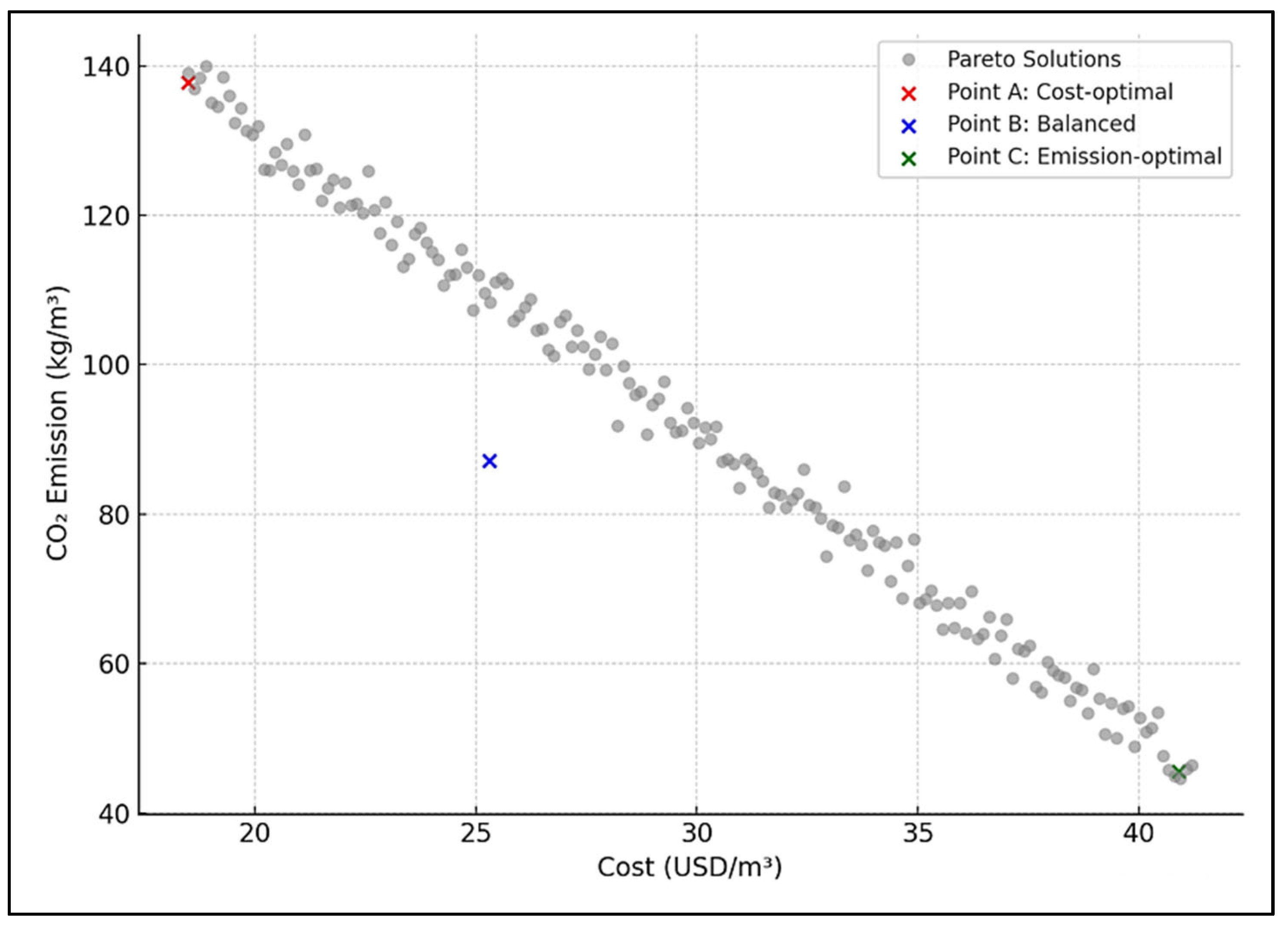 - Non-dominated sorting: All candidate solutions were ranked based on Pareto dominance. Rank 1 included the non-dominated Pareto set, followed by subsequent dominated layers (Rank 2, Rank 3, etc.).