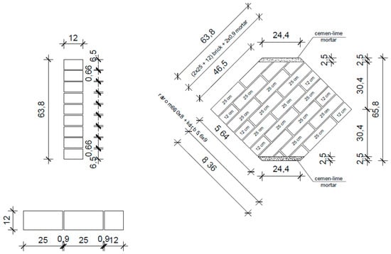 - The diameter of the reinforcing bars can be determined depending on the level of the defined seismic force, i.e., the corresponding axial tensile strength obtained in the IW-SB replacement element. The thickness of the bed-joint and number of the reinforced layers may also influence this; thus, increasing the diameter might not be always possible due to thickness of the bed mortar joint. Commercial steel reinforcements are also available to reduce the thickness as proposed in [,,].