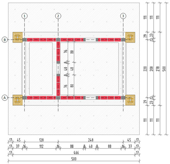Proportion of the wall elements for axial compression tests (FRAMA—Model 1 and Model IW-SB).