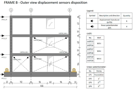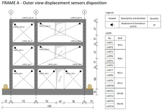 Instrumentation of the masonry wall specimens was designed and implemented in alignment with the specific objectives and testing protocols of the experimental program. A dedicated load cell was employed to measure the applied axial or diagonal force, while multiple channels were allocated to record relative displacements using Linear Variable Differential Transformers (LVDTs) positioned at strategically selected locations on each specimen.