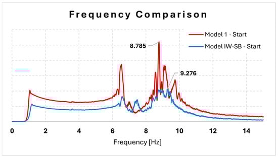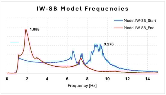 Comparison of the obtained frequencies of the Model IW-SB and Model 1, before testing.