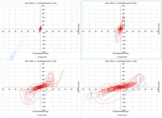 This phase involved progressive shake-table tests using a selected earthquake ground motion record, applied in successive increments of input peak ground acceleration (PGA), ranging from 0.05 g to 1.6 g. The aim was to capture the transition from elastic behavior to inelastic response, including the onset of cracking, development of failure mechanisms, and potential collapse of the structural system under increasing seismic demand.