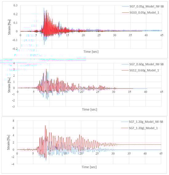 Comparison of the measured strains for Model 1 and Model IW-SB.