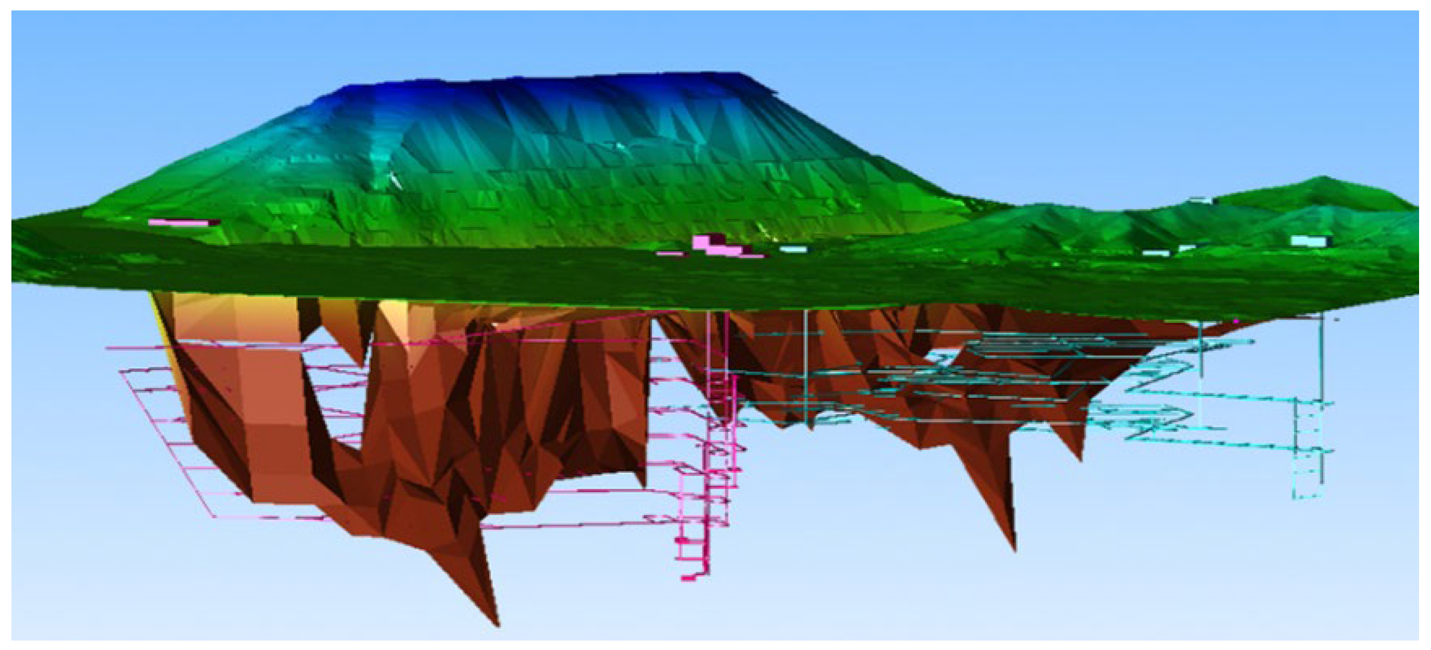 2.1. Analysis of Mine Development Systems in the Transition from Open-Pit to Underground Mining