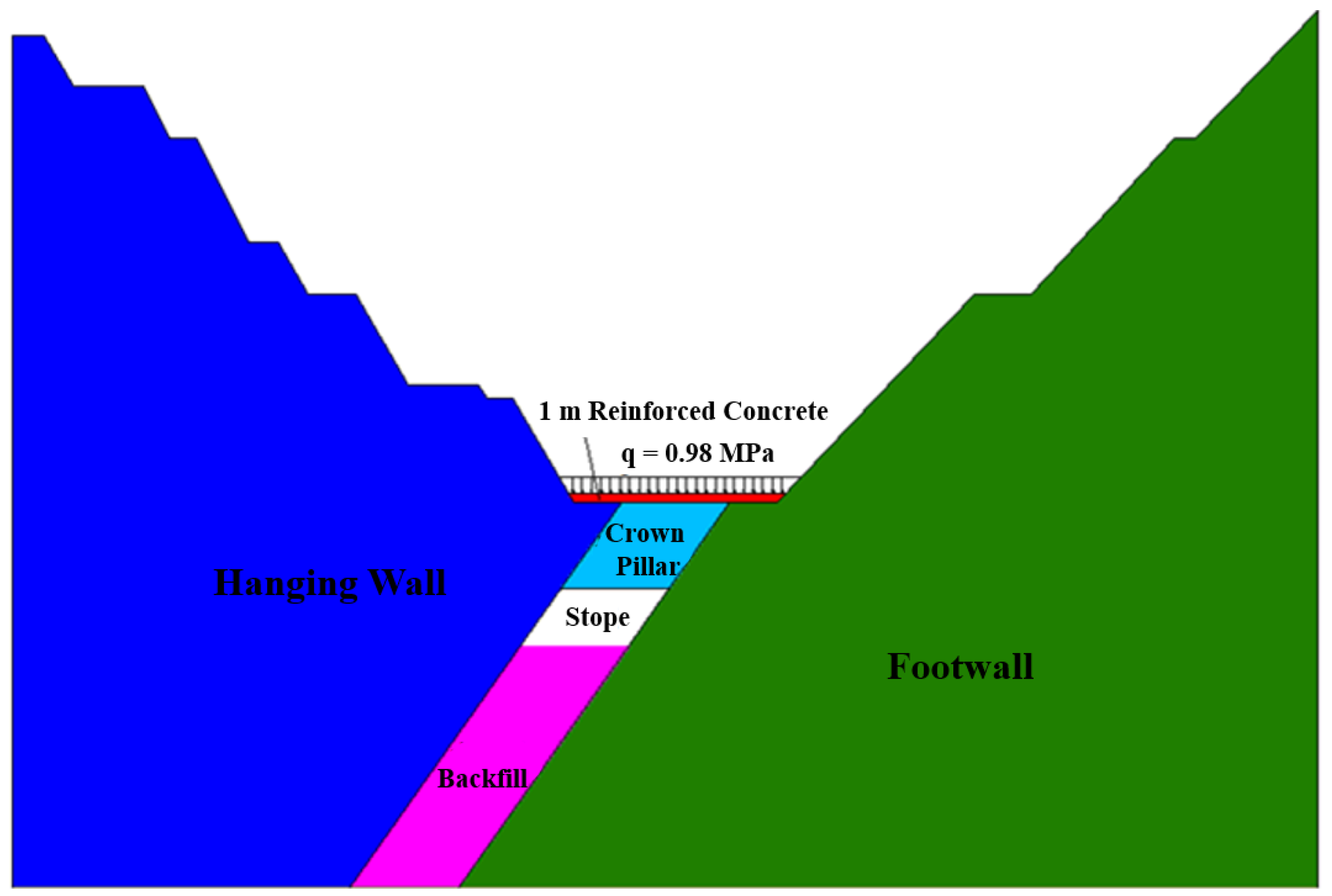 - Xu, S.; Suorineni, F.T.; An, L.; Li, Y.H.; Jin, C.Y. Use of an artificial crown pillar in transition from open pit to underground mining. Int. J. Rock Mech. Min. Sci. 2019, 117, 118–131. [Google Scholar] [CrossRef]