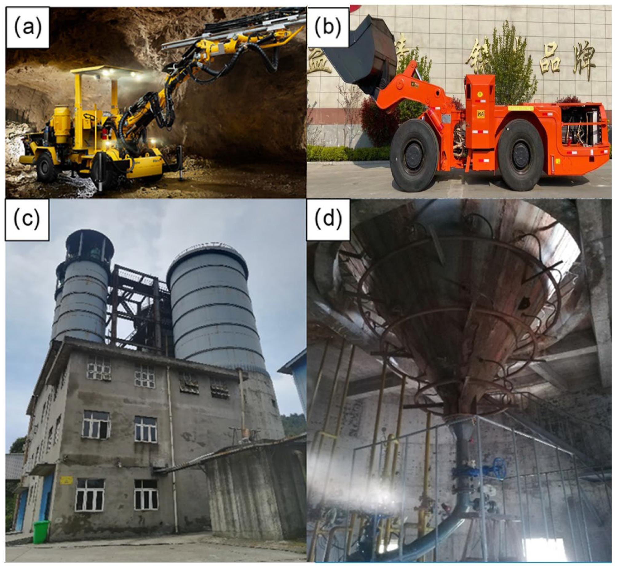 - Li, S.; Xiang, Z.; Dan, Z.; Yin, T.; Chen, J. The Recent Progress China Has Made in Mining Method Transformation: Part II Sublevel Caving Method Transformed into Backfilling Method. Appl. Sci. 2024, 14, 9732. [Google Scholar] [CrossRef]