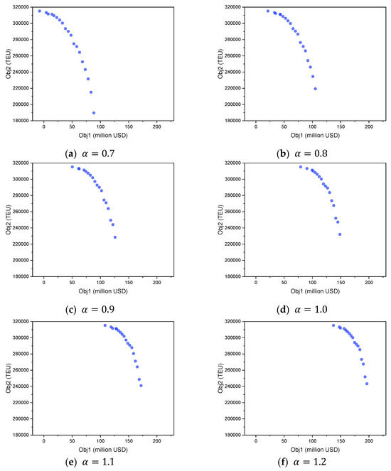 - Sensitivity analyses demonstrate that as freight rates increase, the Pareto frontier shifts to offer simultaneously improved profitability and transport volume potential. This shift shows diminished marginal trade-offs between the two objectives, enhancing operational flexibility.