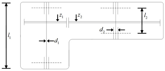 There are seven parameters involved in the design of the reducer, including width b, number of tooth dies m, number of gear teeth z, length of the first shaft between bearings , length of the second shaft between bearings , diameter of the first shaft , and diameter of the second shaft . By optimizing the weight of the gear and the axial deformation of the shaft, the weight of the reducer is minimized. The diagram of the problem is shown in Figure 10. For specific definitions, see Equations (34)–(36).