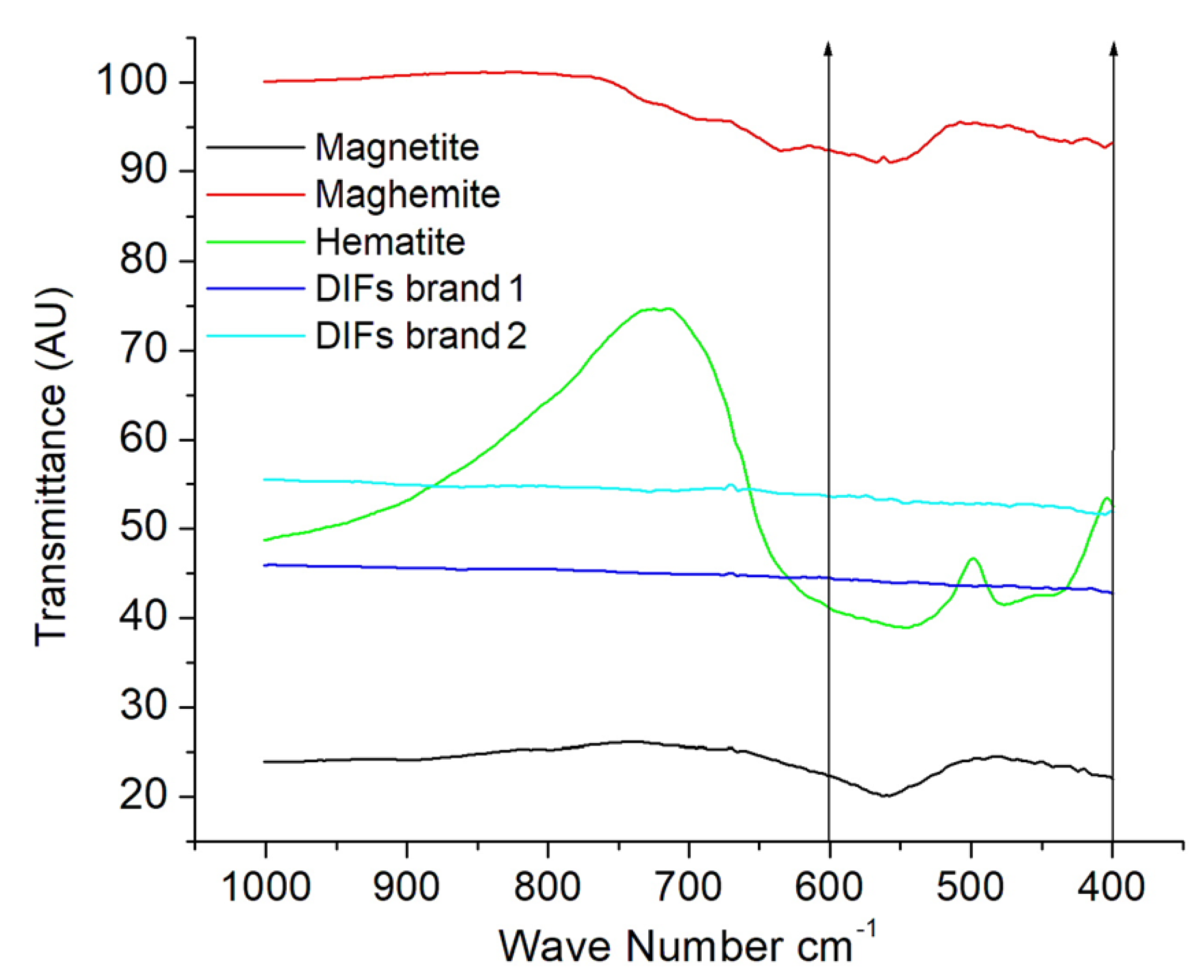 - Nasrazadani, S.; Raman, A. The application of infrared spectroscopy to the study of rust systems—II. Study of cation deficiency in magnetite (Fe3O4) produced during its transformation to maghemite (γ-Fe2O3) and hematite (α-Fe2O3). Corros. Sci. 1993, 34, 1355–1365. [Google Scholar] [CrossRef]