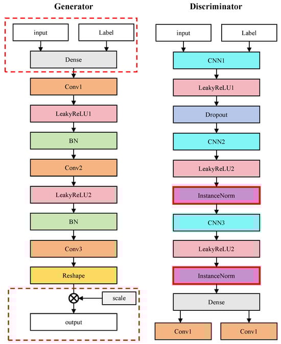 Data augmentation (DA) is an effective method for expanding a dataset scale, enabling models to learn the original data distribution to generate new data with consistent distribution. In recent years, GANs have been extensively applied in data augmentation. By learning real sample distributions from random noise inputs, GANs generate novel sample data, serving as an effective solution for few-sample data augmentation. GANs have been utilized for data augmentation across numerous domains. Zhang et al. [] proposed a Dual-Attention Deep Convolutional Generative Adversarial Network (DADCGAN), which incorporates efficient channel attention and external attention mechanisms to capture fundamental feature information from channel and spatial dimensions of images, respectively. Additionally, spectral normalization and dual-timescale update rule strategies are integrated to stabilize the training process. Ye et al. [] constructed a cycle-consistent GAN for domain transformation, using prior-knowledge-based attention modules, leveraging self-attention and channel attention mechanisms to facilitate conversion, thereby achieving targeted generation of defective insulator samples. Seon et al. [] introduced a novel GAN-based method for augmenting time series data to address dataset imbalance in IoT applications. Embedding, restoration, and supervised networks are adopted to encapsulate temporal dynamics in the time series data. Furthermore, incorporating mutual information and MSE terms into the loss function while implementing spectral normalization enhances GAN training stability. These diverse improved GAN variants provide a solid theoretical foundation for few-sample data augmentation.