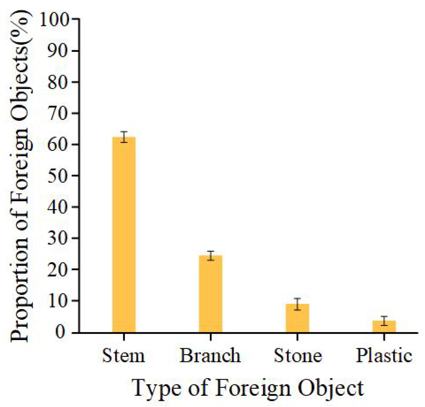 Proportion of different types of foreign objects.