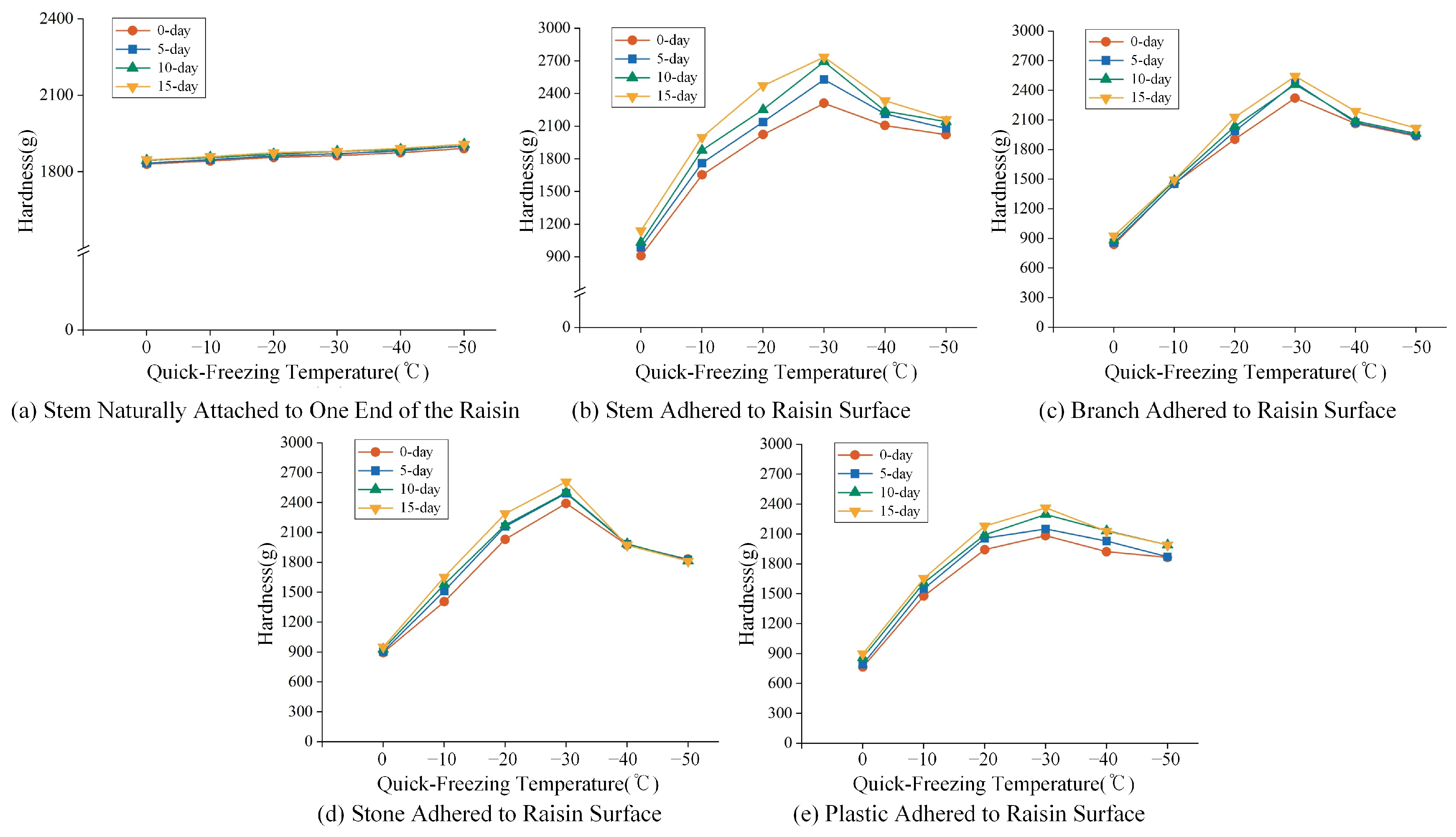 | Quick-Freezing Temperature (°C) | 0-Day | 5-Day | 10-Day | 15-Day |