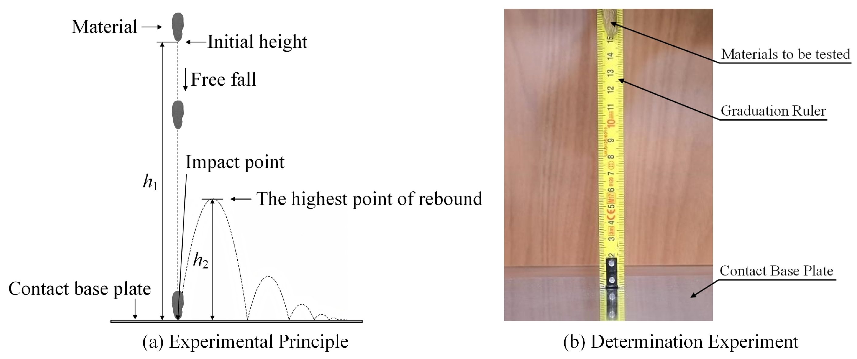 Determination of the coefficient of restitution.