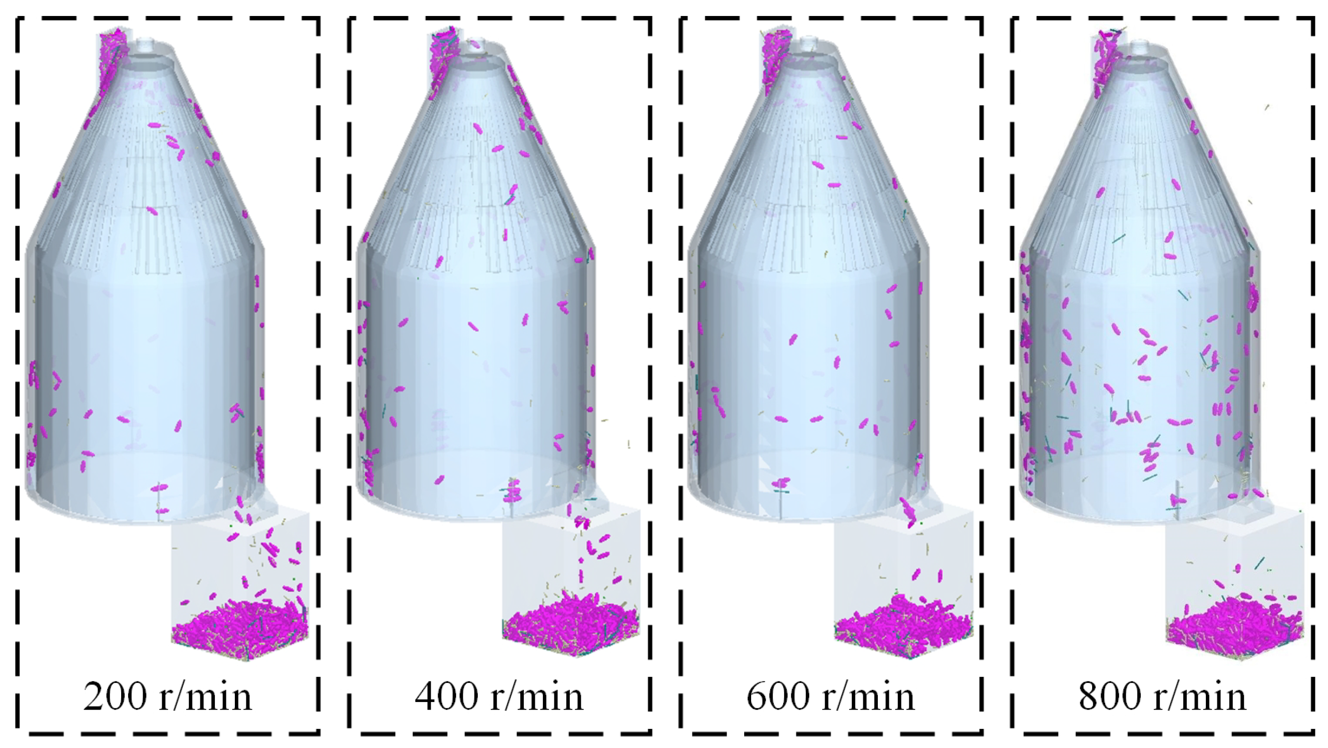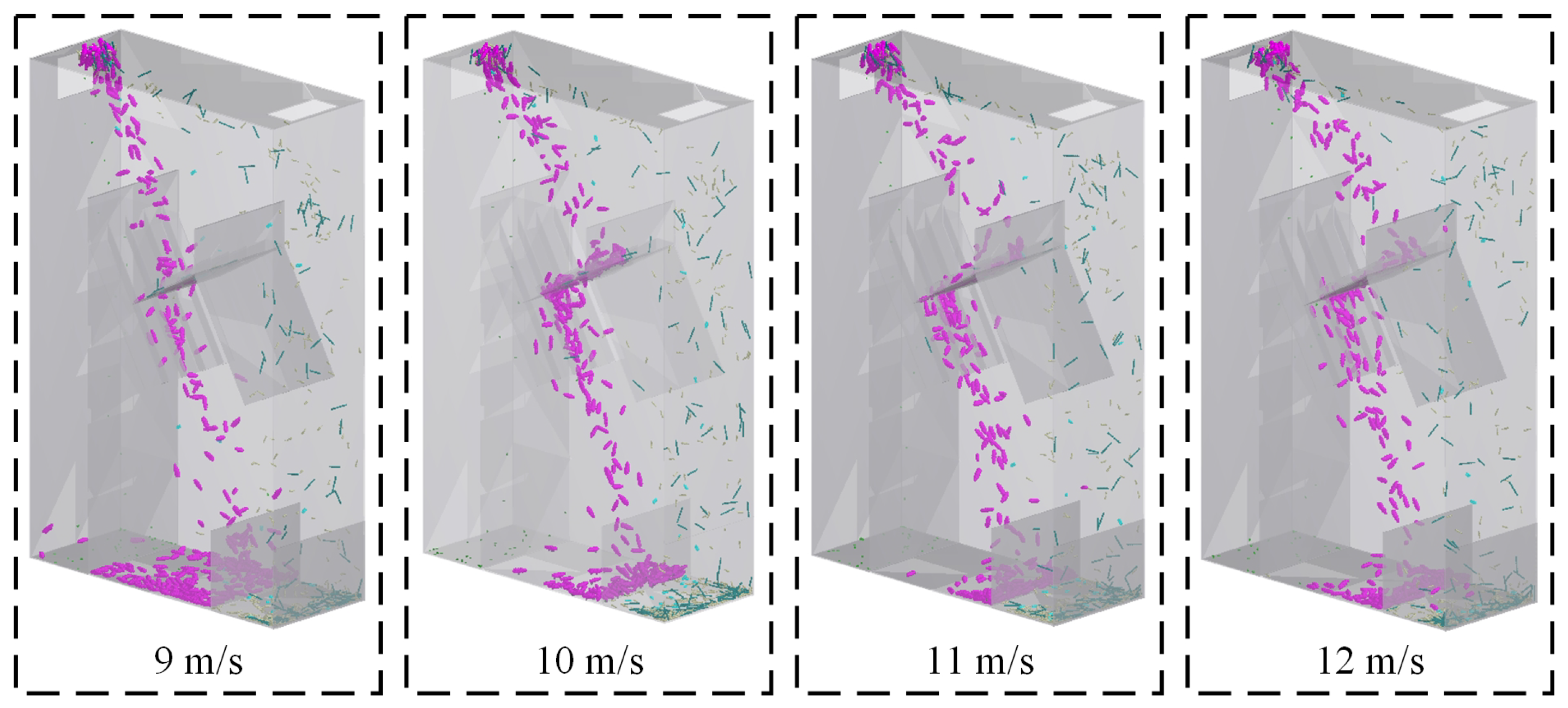 Sieving processes corresponding to different airflow velocities.