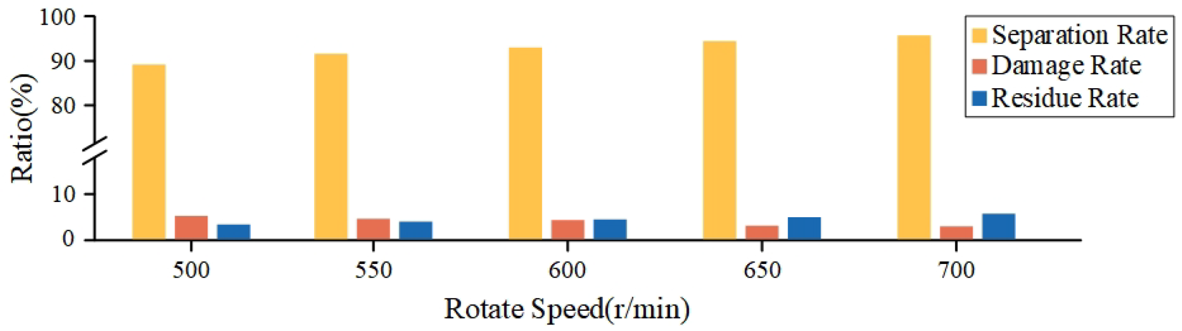 Separation metrics under different motor rotational speeds.