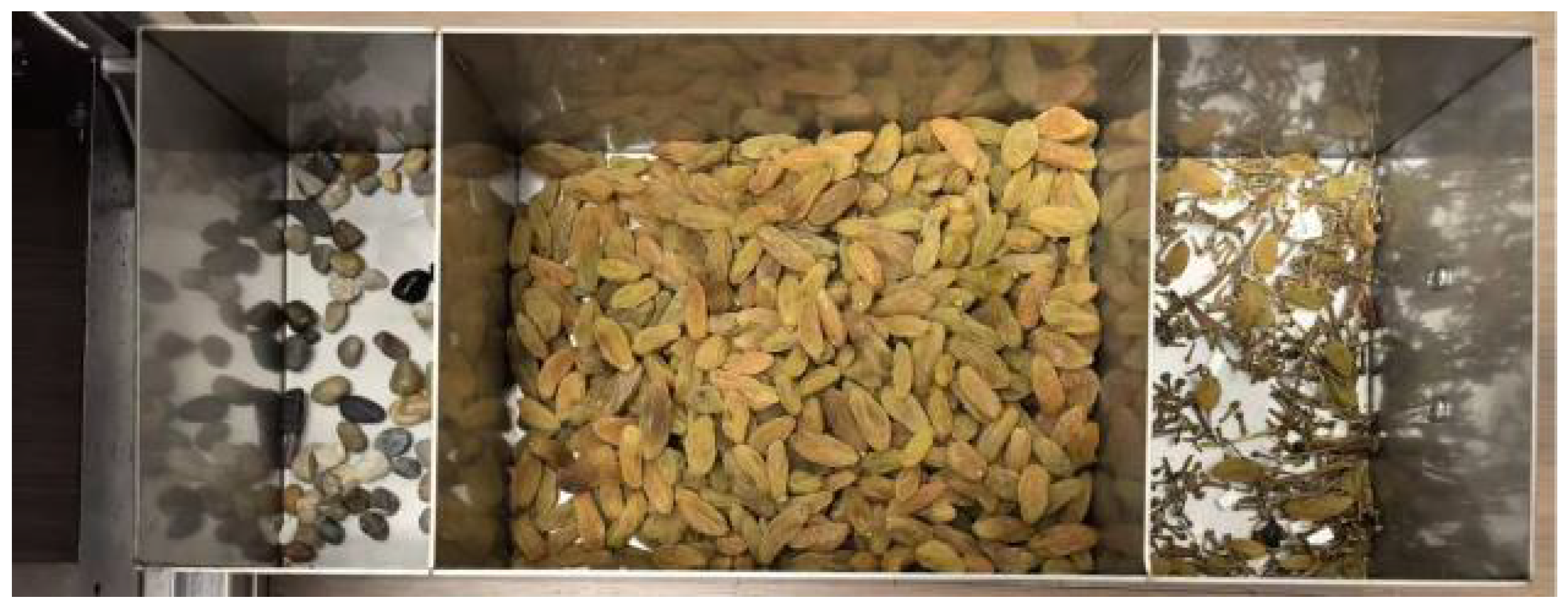 | Materials | Raisin | Stem | Branch | Stone | Plastic |