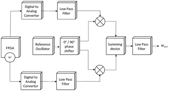 Another more unconventional technique is the use of the Single Side Band (SSB) approach. This mixing principle is a proven technique [39,40,41] and can also be used in the frame of space applications [42]. In this approach, a reference oscillator signal fc is used, shifted by 90° and applied to two separate mixing devices (Figure 9).