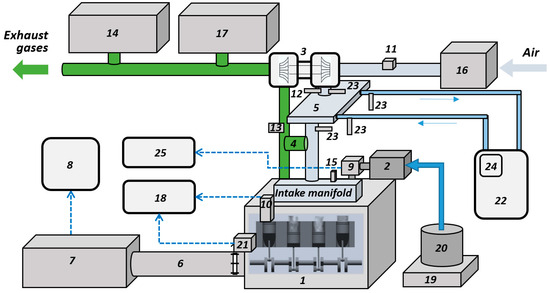 3.1. Parameters of the Air–Exhaust Gas Mixture Supplied to the Engine Cylinder