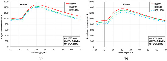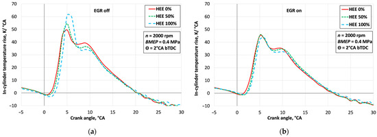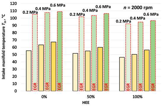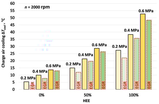 - with 100% HEE, intake manifold air temperature dropped by ~13 °C, while intercooler outlet temperature decreased by ~52 °C (EGR on) and ~48 °C (EGR off).