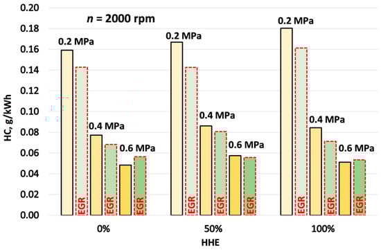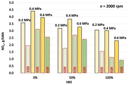 - at BMEP levels of 0.2, 0.4, and 0.6 MPa, the ECU-controlled EGR rates were approximately 0.28, 0.22, and 0.19, respectively;