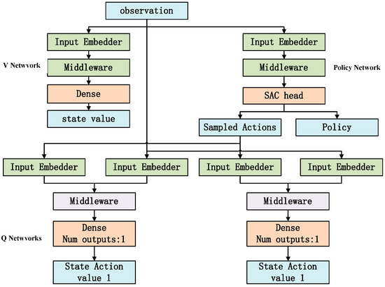 SAC adopts the Actor-Critic structure, and the strategy network (Actor) represents the probability distribution from learning state to action. The value network (Critic) is used to evaluate the Q-value of the state-action pair [24]. It is an offline reinforcement learning, and its network architecture is shown in Figure 1: