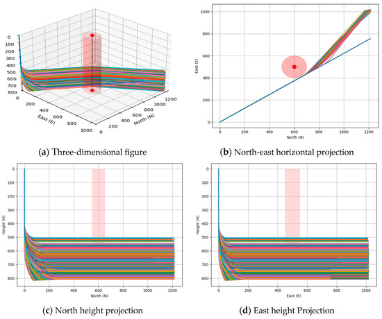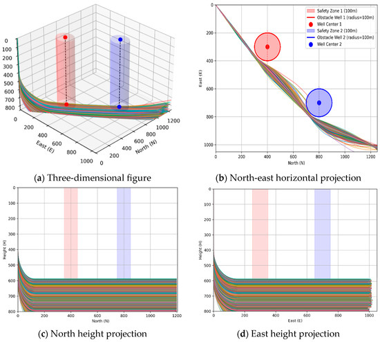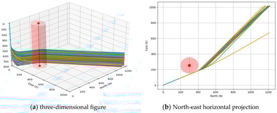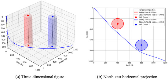 The agent can adjust the deviation angle and azimuth angle, respectively, within the radian range and can be designed according to the specific situation according to whether there are obstacles. This range setting combines the actual adjustment ability that can be achieved by the conventional rotary steering tool (RSS) in the wellbore structure to ensure that the trajectory planning results have good constructability.